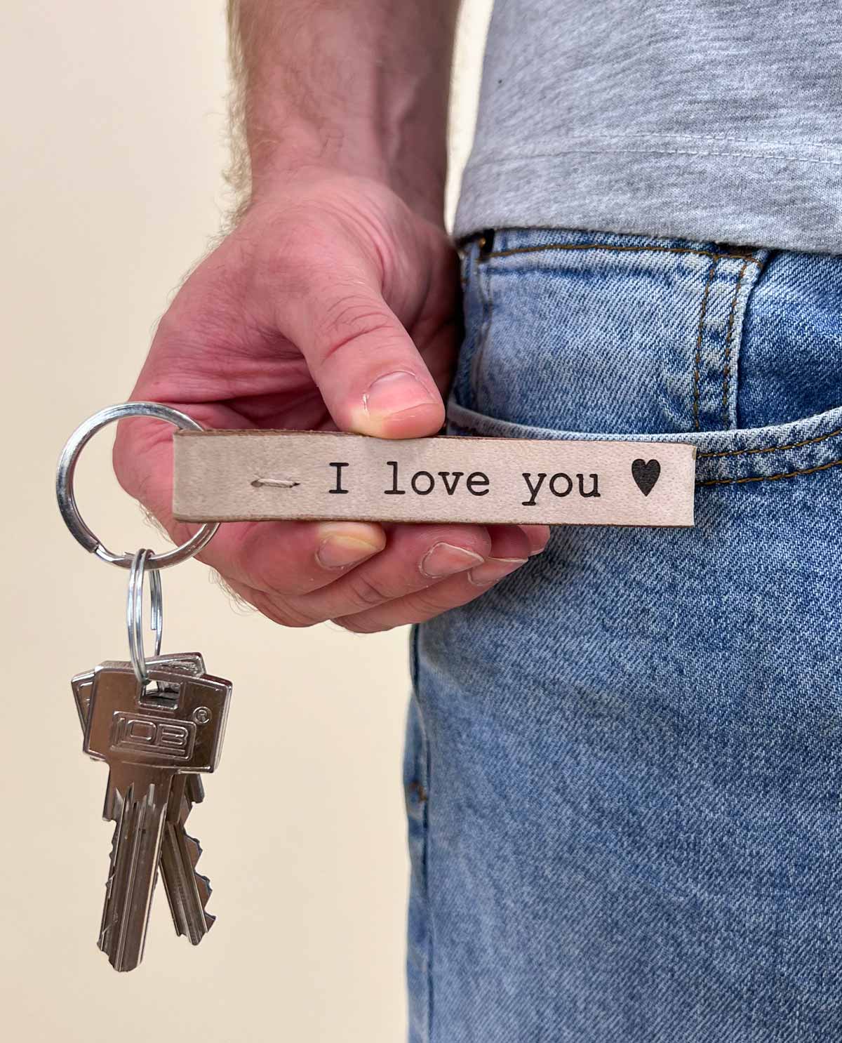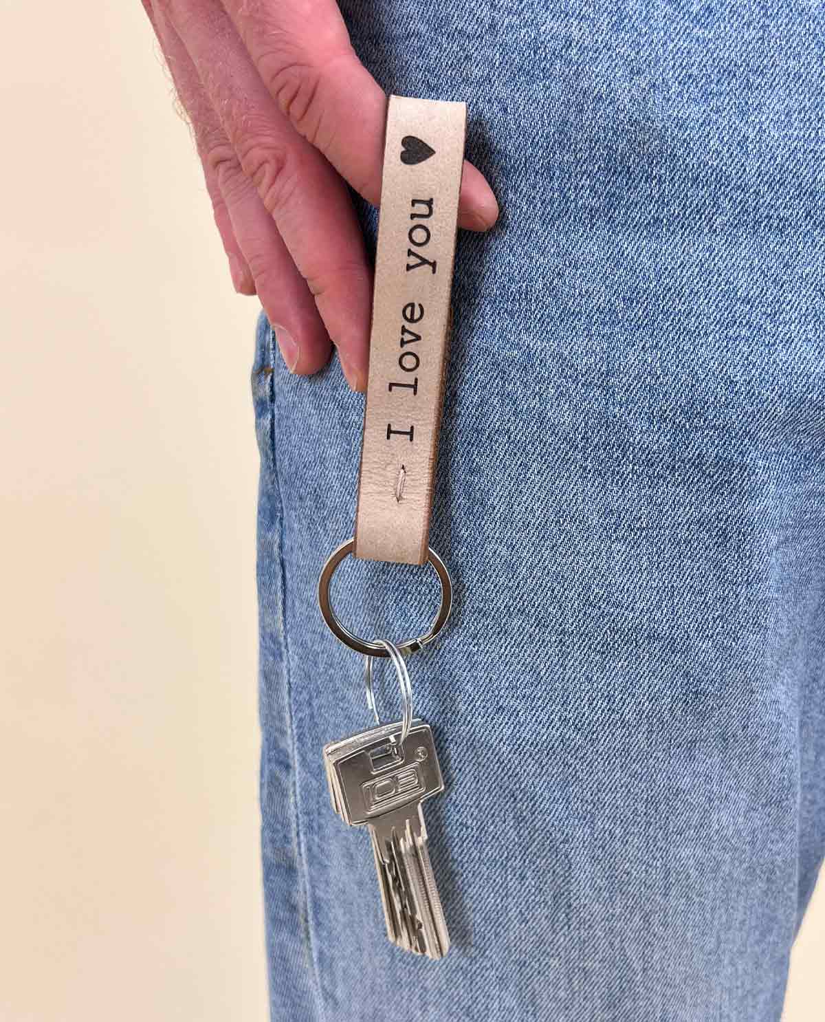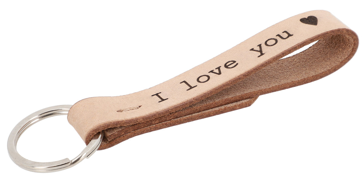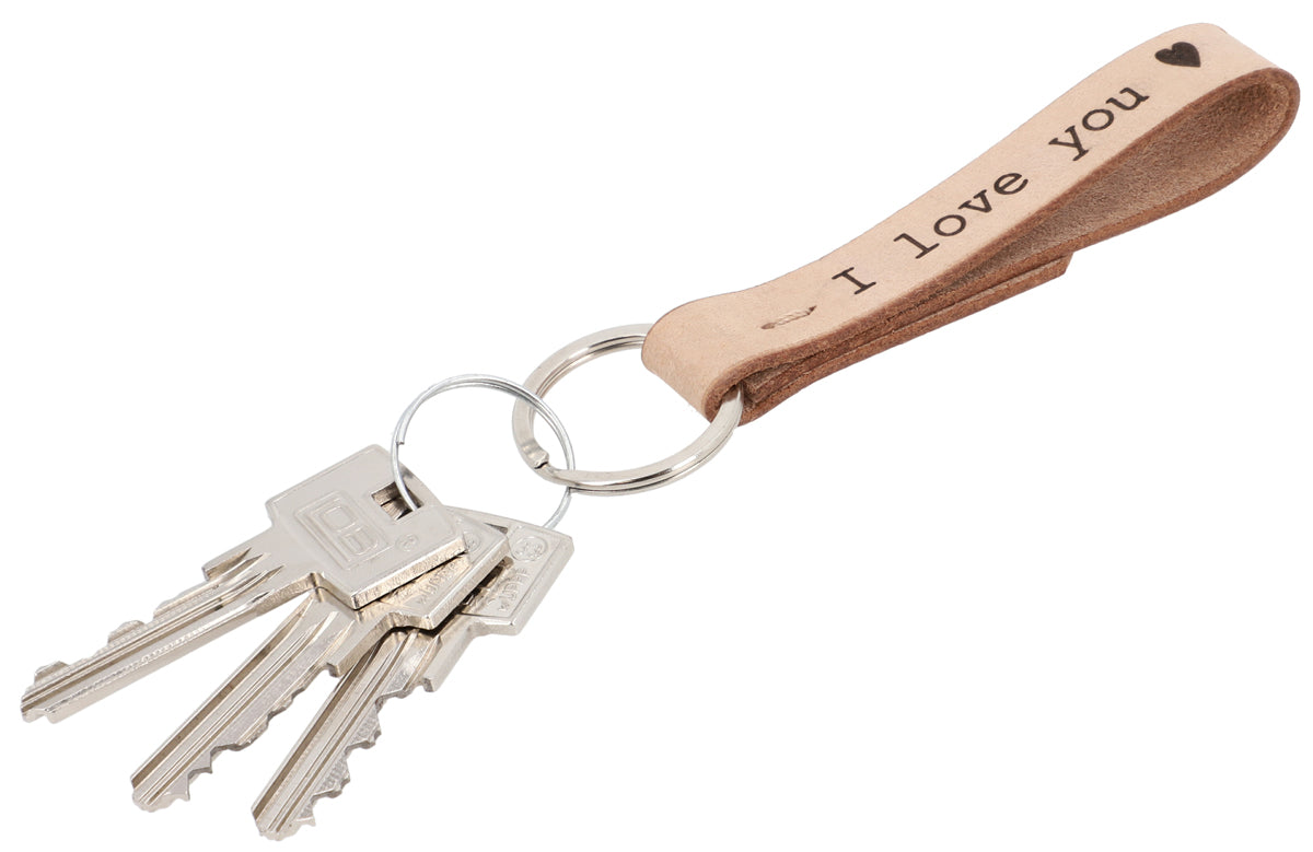 Schlüsselanhänger "I love you" Lederanhänger Schlüsselring Hellbraun Leder