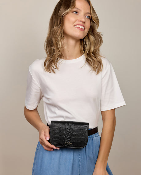 Du suchst ein klassisches aufklappbares Portmonnaie mit genug Platz für extra viele Karten mit extragroßen Münzfach? Aus hochwertig gegerbtem Rindsleder bietet "Gloria" dir genau das und besticht auch noch durch ihren trendy Kroko Look! Funktionalität mit der Extraportion Trend.
