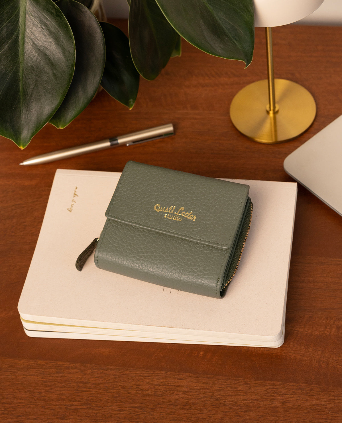 Im Inneren verfügt „Brigitta“ über ein Geldscheinfach, ein ausklappbares Sichtfenster, Platz für bis zu sechs Karten sowie ein separates Münzfach mit Reißverschluss, das verhindert, dass Münzen unkontrolliert herausfallen. Aus hochwertigem Büffelleder gefertigt, wird das Portemonnaie sicher mit einem Druckknopf verschlossen. So bist Du jederzeit bereit für den Tag. Der integrierte RFID-Blocker in der Geldbörse stört die Signale von Lesegeräten, schützt Deine Karten und sorgt für die Extraportion Sicherheit.