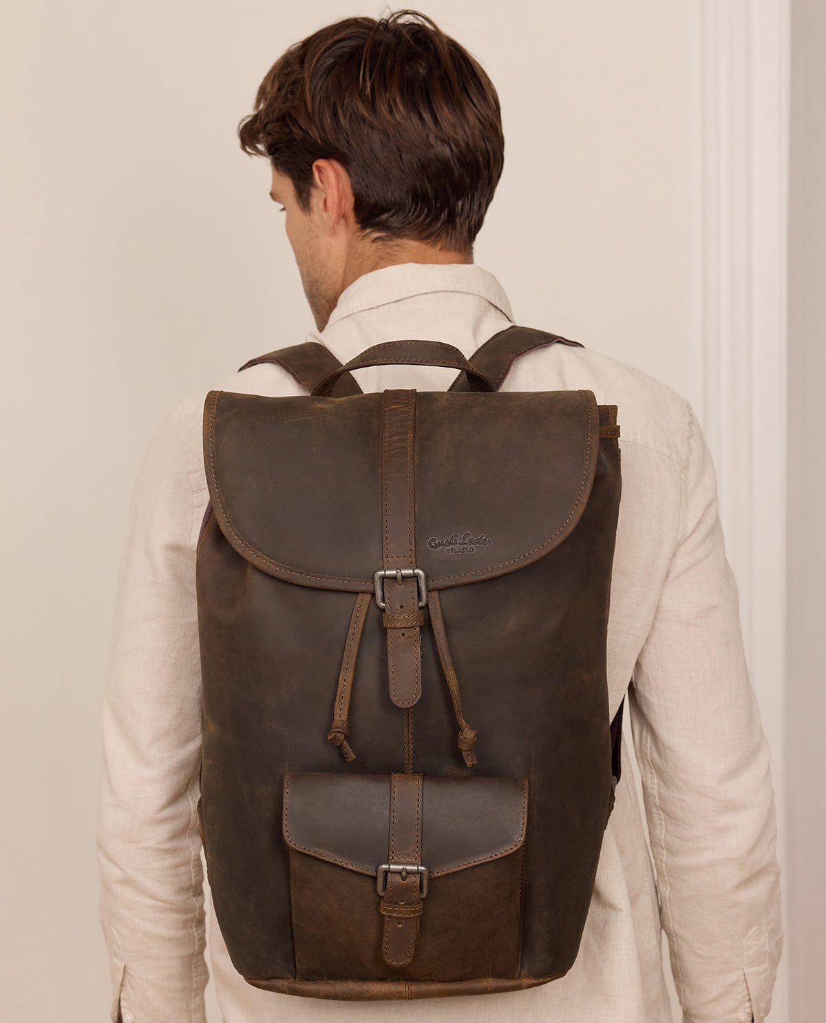 Rucksack Lederrucksack Vintage Cityrucksack Outdoorrucksack Laptoptasche Unirucksack Wanderrucksack Berliner Großstadt Flair Braun Leder