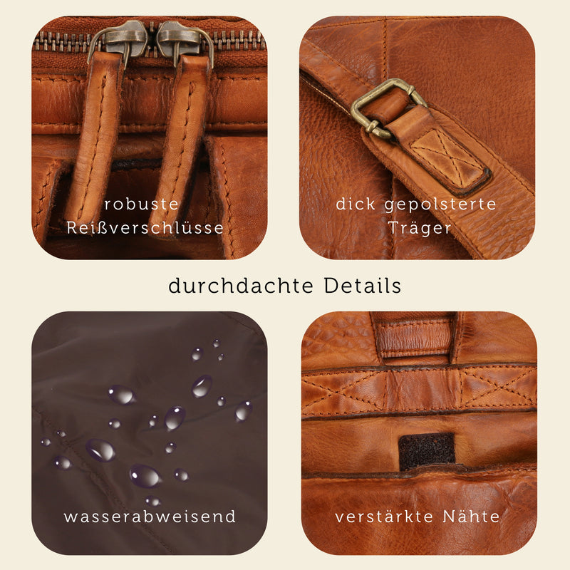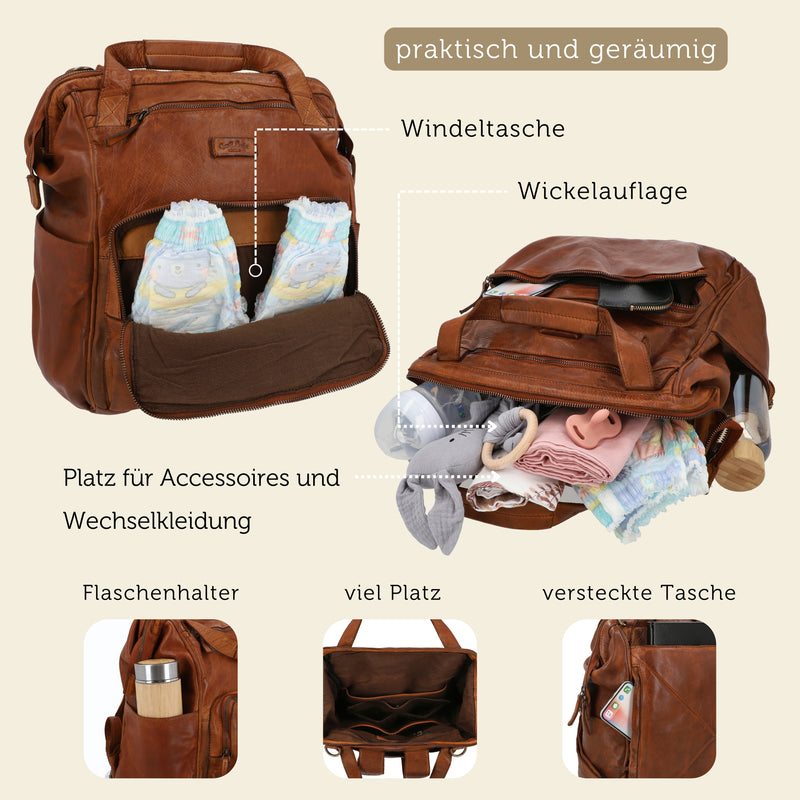 Praktischer und stilvoller Wickelrucksack "Carina" aus braunem Leder für Eltern auf Achse