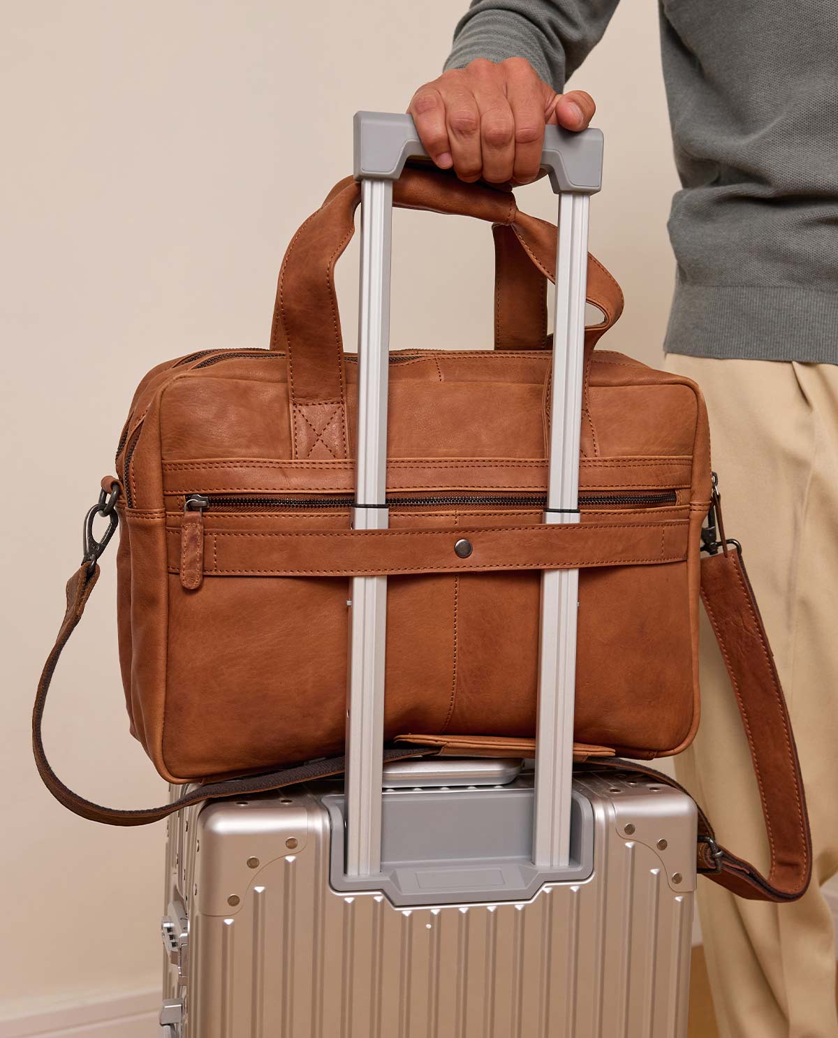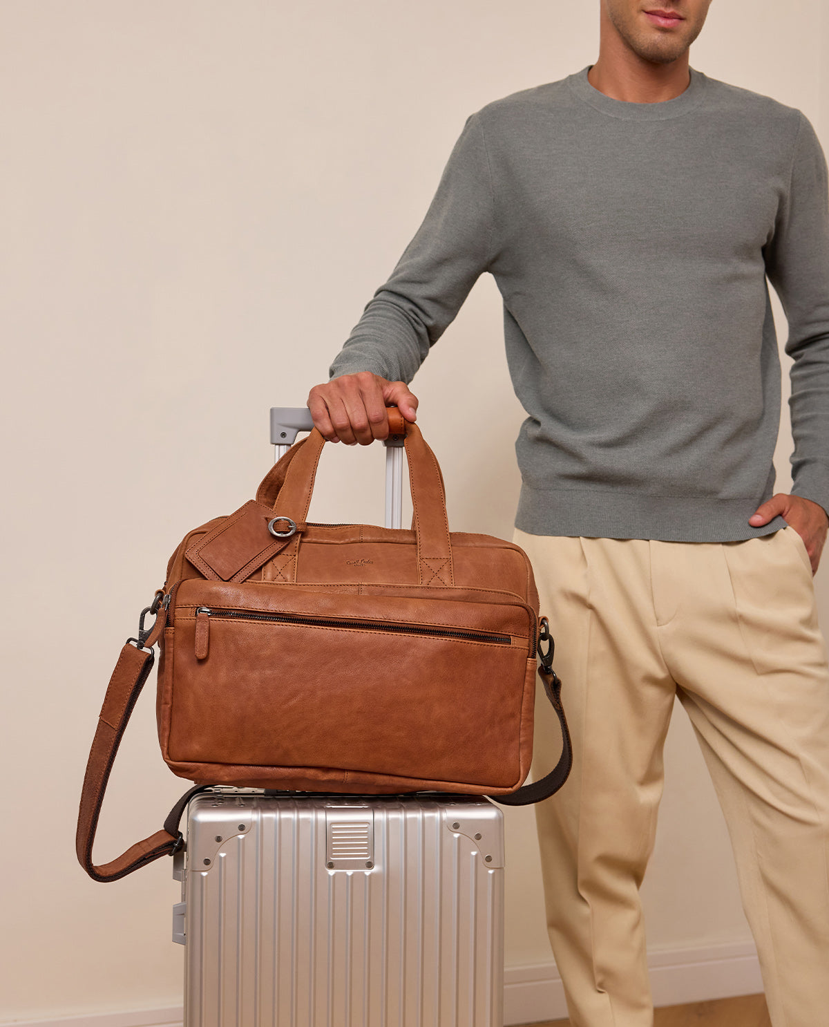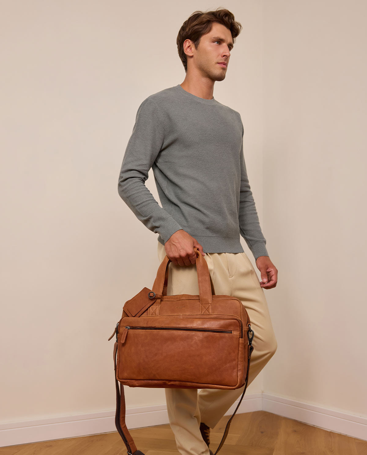 Die "Alvaro" ist die perfekte Businesstasche für alle, die Eleganz mit Funktionalität verbinden möchten. Gefertigt aus hochwertigem braunen Leder, verleiht sie Deinem Look eine zeitlose und professionelle Note. Mit durchdachtem Design und großzügigem Stauraum ist sie ideal als Arbeitstasche für Meetings, Reisen oder den Büroalltag. Dank der doppelten Reißverschlussfächer behältst Du stets den Überblick über Deine Dokumente und Arbeitsutensilien.