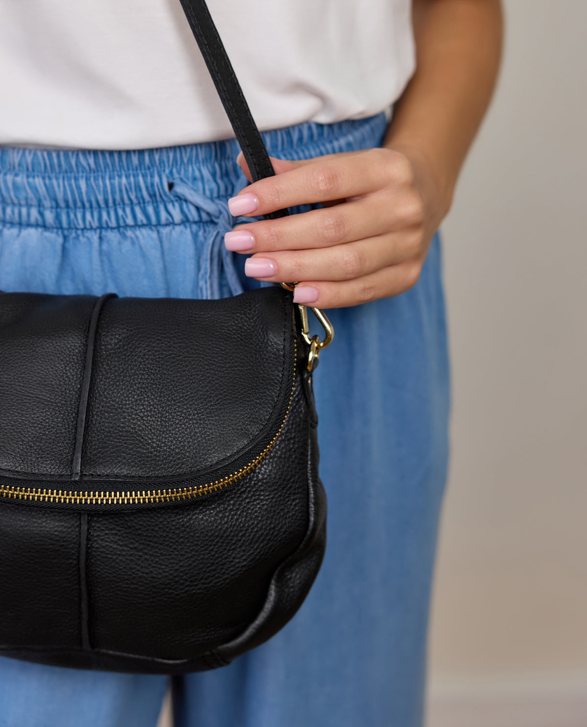 Die Umhängetasche „Iselin“ vereint zeitlose Eleganz mit durchdachter Funktionalität – der perfekte Begleiter für Deinen Alltag und besondere Anlässe. Gefertigt aus hochwertigem schwarzem Leder, überzeugt sie mit einer weichen Haptik und einer langlebigen Verarbeitung. Die edlen Metallelemente setzen dezente Akzente und unterstreichen die hochwertige Qualität.
