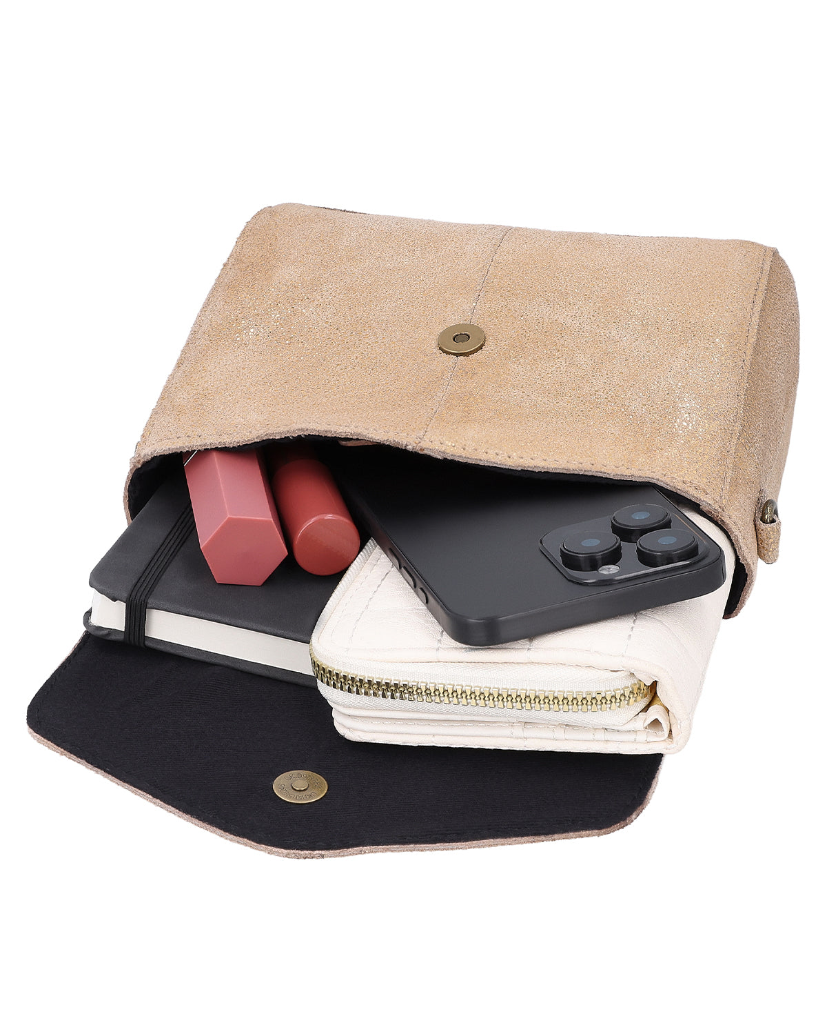 "Willow" zeichnet sich dabei einerseits durch ihr klassisches Design aus, andererseits auch durch ihre angenehme Größe. So kannst Du sicher sein, dass Schlüssel,Notizbuch, Smartphone und dein Portemonnaie genug Platz haben, während Du unterwegs bist. Aus hochwertig verarbeitetem Wildleder kannst du "Willow" mittels Magnetschloß abschließen. Ein passender Lederriemen vollendet das Design deines neuen Lederlieblings.