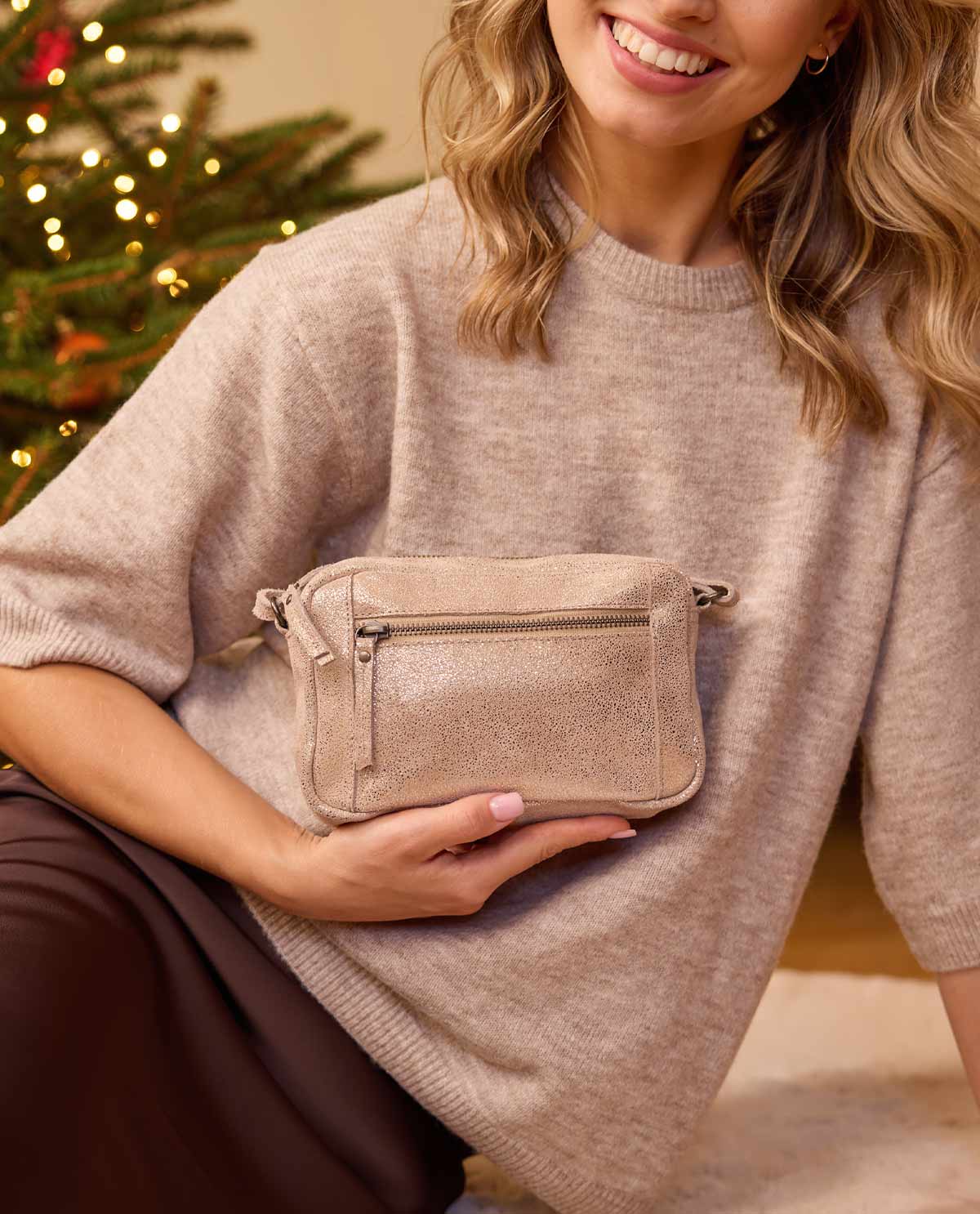 Durch das weiche und zugleich widerstandsfähige Wildleder bekommt die Handtasche erst den absolut angesagten Vintagelook im casual-sportiven Charme, der sich jedem Outfit auf ganz subtile Weise anpasst.