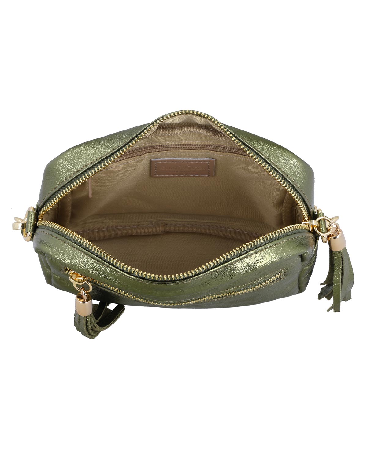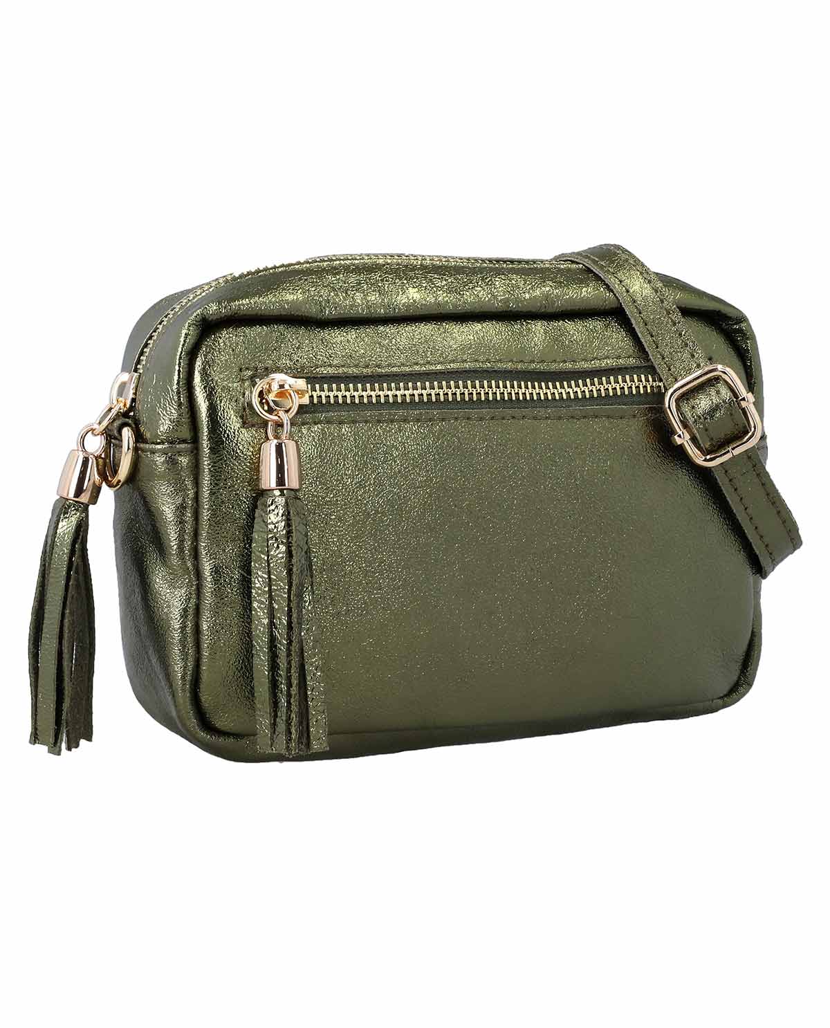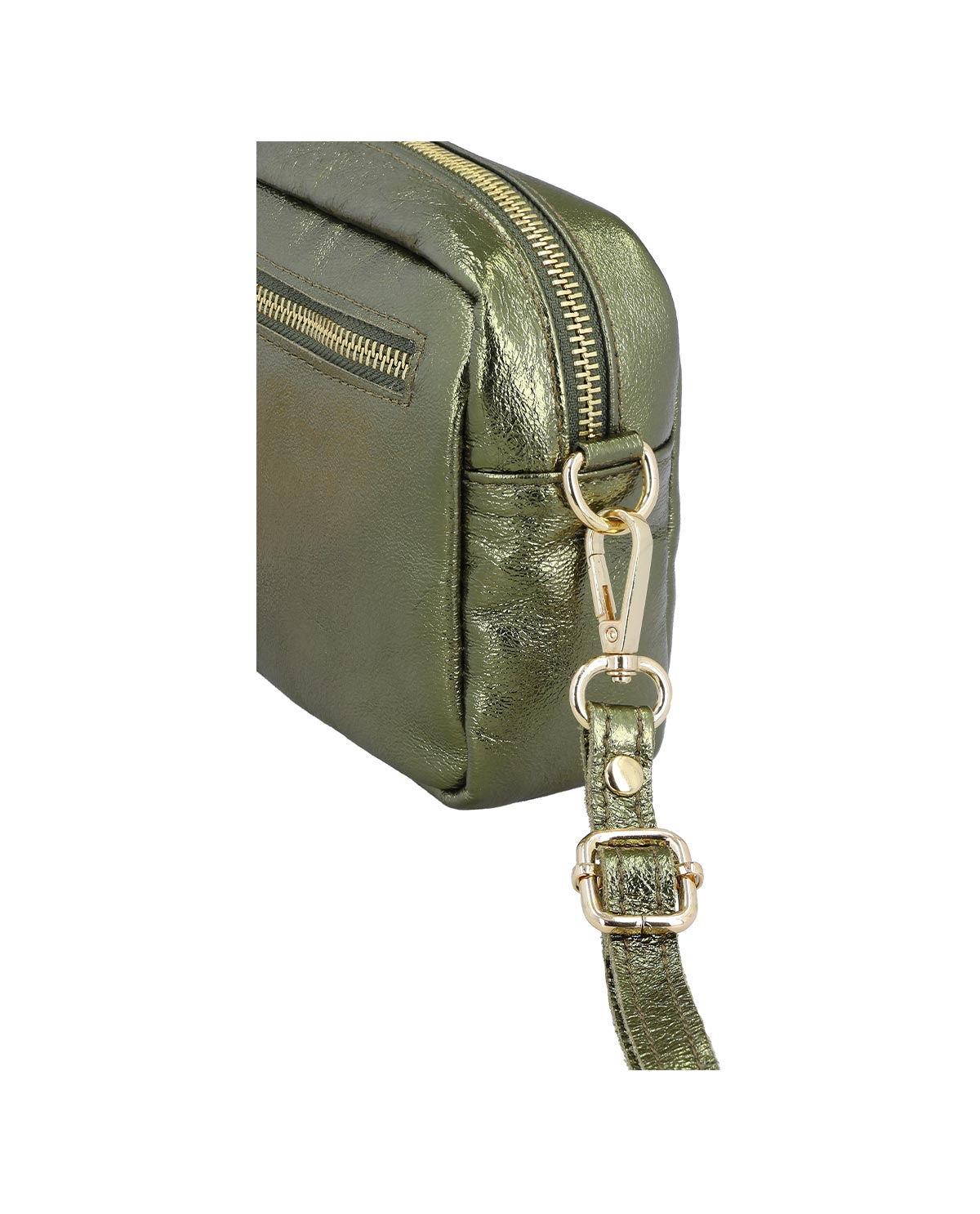Umhängetasche Ledertasche Handtasche Crossbody Tasche Damen Grün Glänzend Leder - Made in Italy