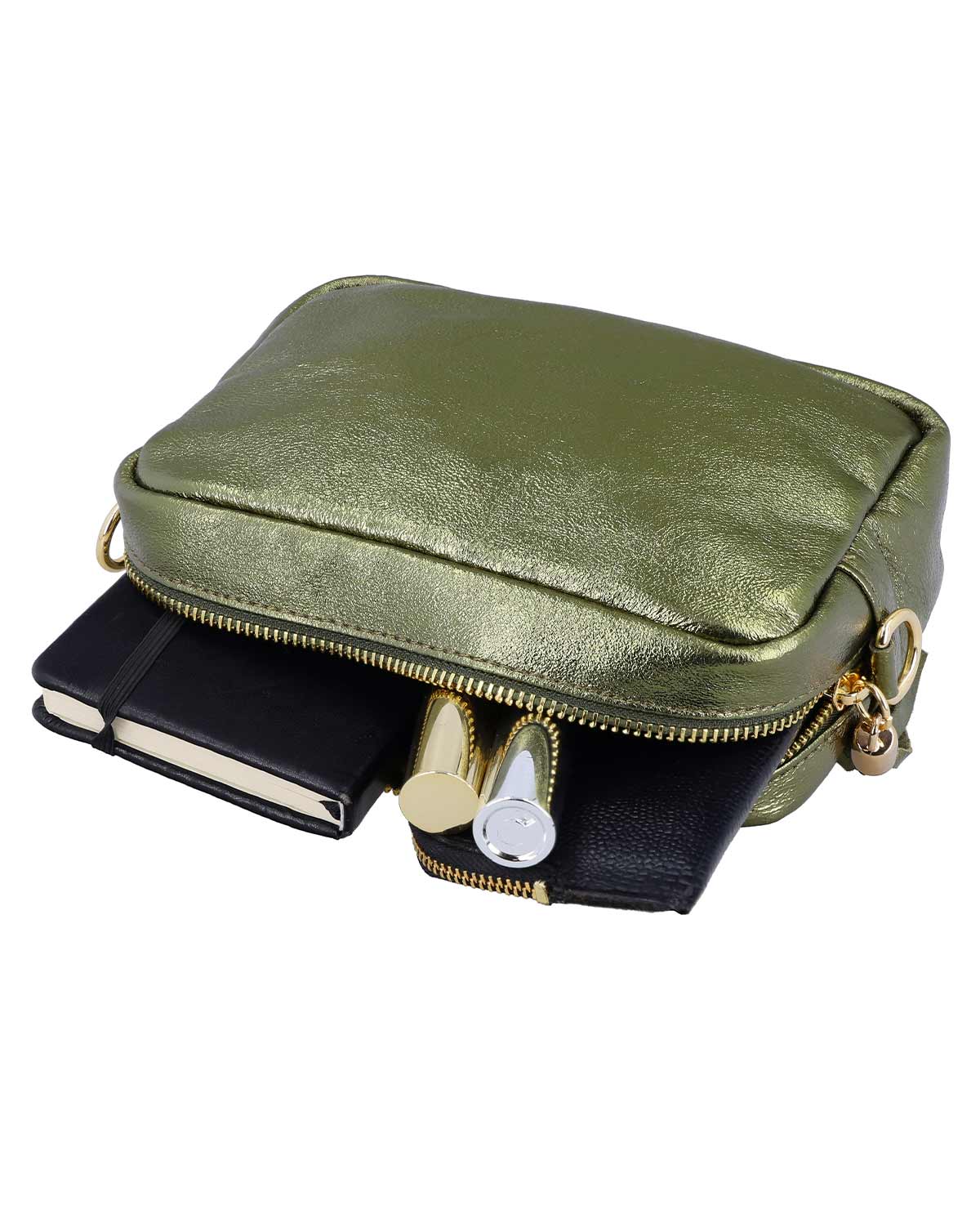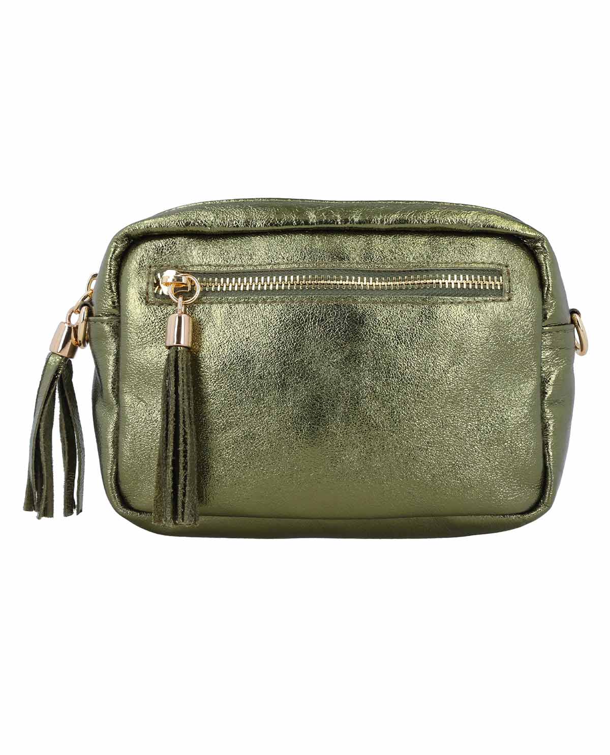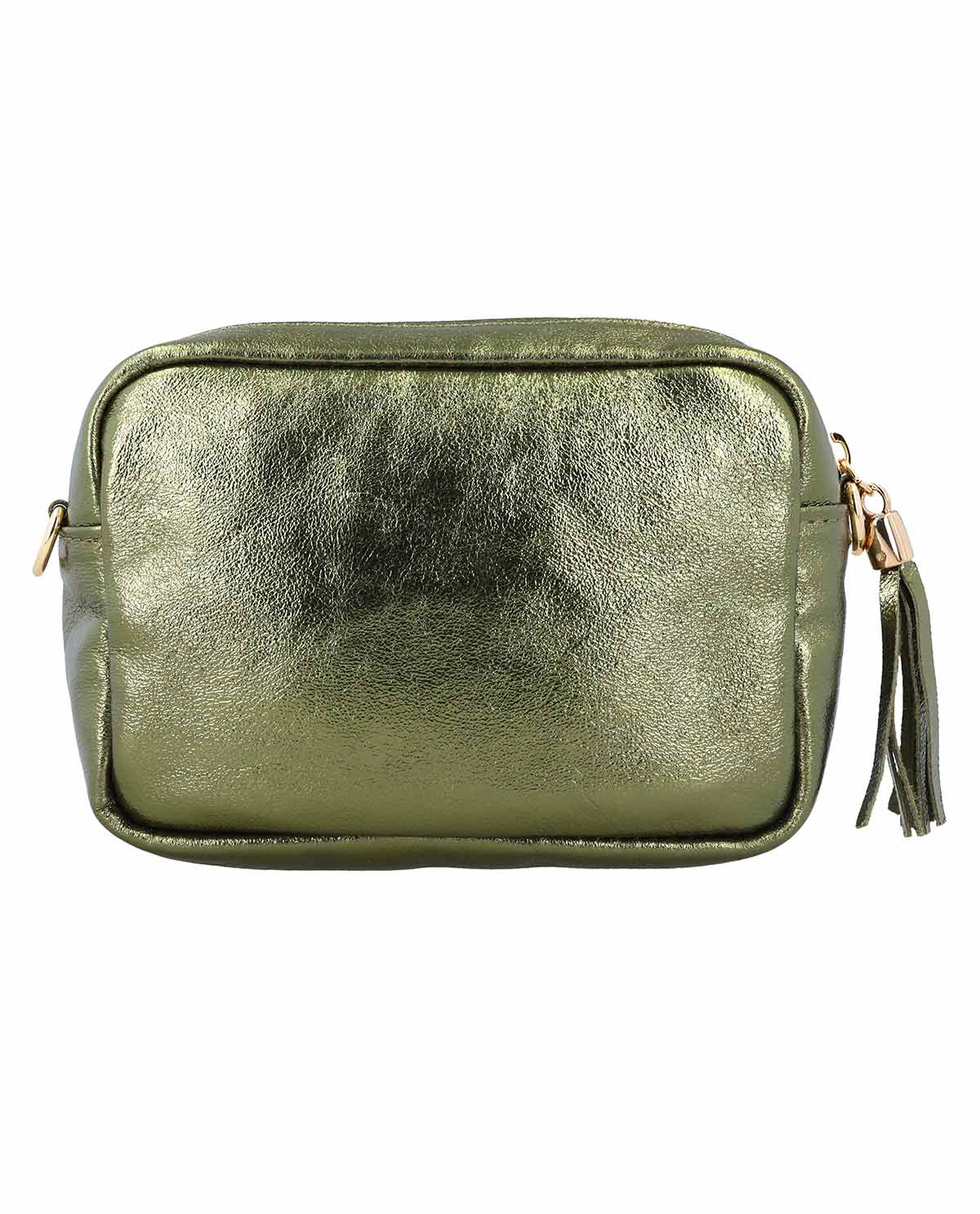 Umhängetasche Ledertasche Handtasche Crossbody Tasche Damen Grün Glänzend Leder - Made in Italy