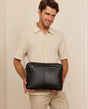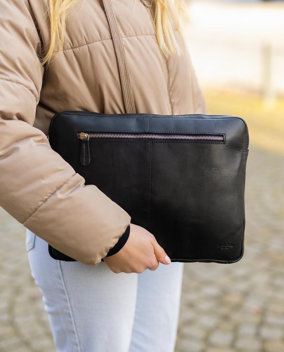 High-quality black leather laptop bag made of vegetable-tanned leather – stylish elegance meets practical functionality
