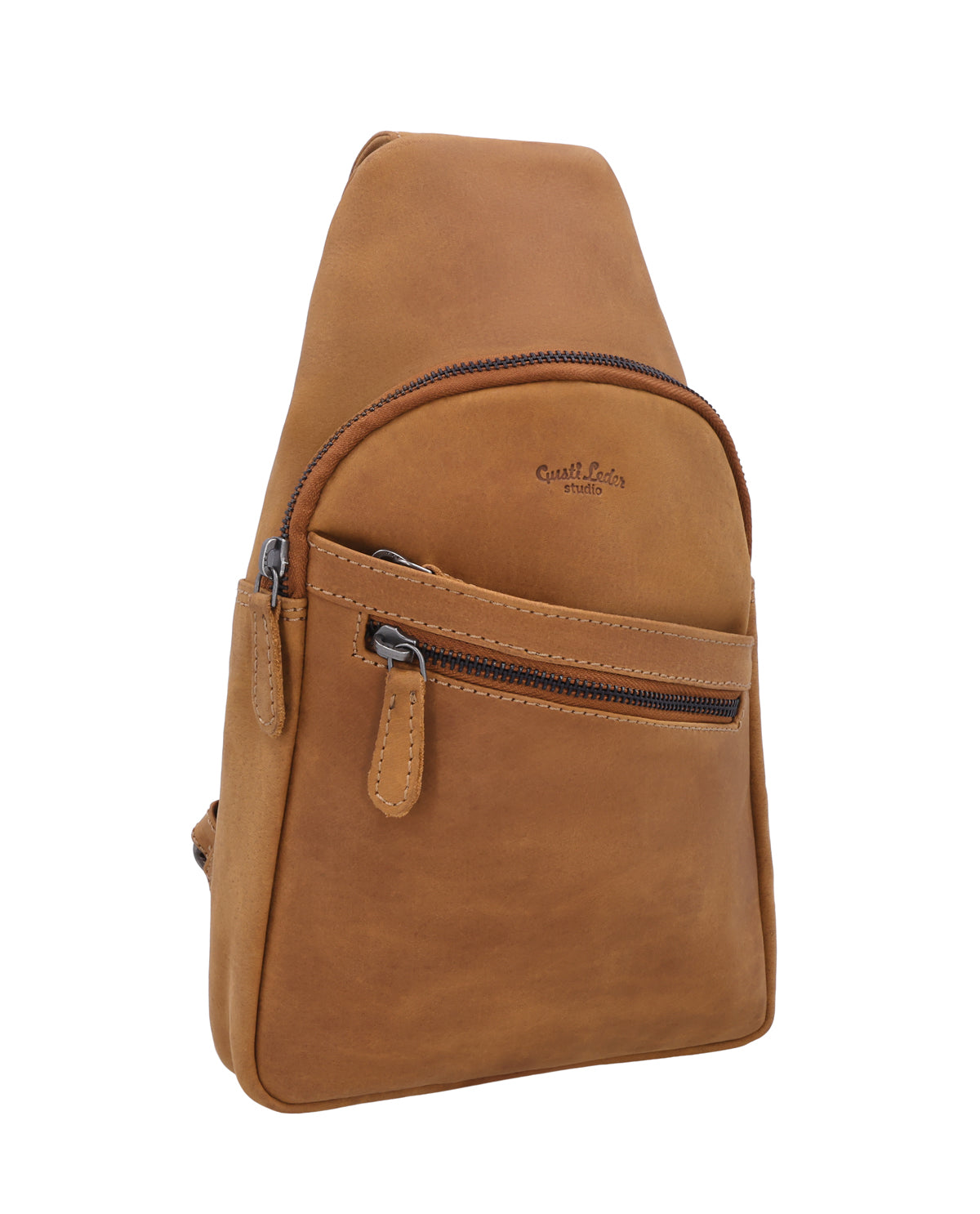 Inside, an inner slip pocket helps you keep small items organized, while a zippered inner compartment reliably protects your valuables. The adjustable and removable carrying strap allows you to choose from a variety of carrying options and adapts flexibly to your needs. Azon closes with a zipper on one main compartment to keep everything securely in place when you're on the go. An engraving patch is also integrated for a personal touch, and the discreet Gusti logo rounds off the look harmoniously. "Azon" is a leather sling bag that skillfully combines functionality and everyday practicality.