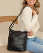 The main compartment in this shoulder bag is secured using a sturdy zip, so none of your belongings can go missing. “Jacqueline” has an extra tab that’s secured with a magnetic popper. So, you’ll have plenty of space for your water bottle, purse, notebooks, keys, and makeup. There’s an extra zipped pocket on the front of the bag where you can keep your phone, headphones, or gum.