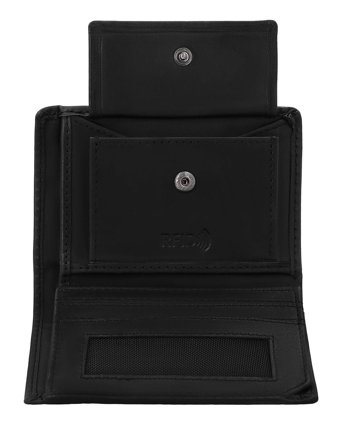 Do you want your wallet to simply serve its purpose? Then "Gabe" is the perfect wallet for you! This simple and practical wallet is completely minimalist, but has plenty of space for everything you need. What's particularly cool about "Gabe" are its card slots: they are semi-transparent, so you can see at a glance which cards you have in which slot. The coin compartment can be securely closed with a snap fastener, and there's also room for your bills in "Gabe." For those little everyday moments, there is also an extra coin compartment for a single coin – ideal if you want to have something quickly to hand. Thanks to integrated RFID protection, your cards are also reliably protected against unwanted scanning. The handy format fits in any pocket and impresses with its classic, timeless design. The robust leather can withstand anything and becomes even more beautiful over time.