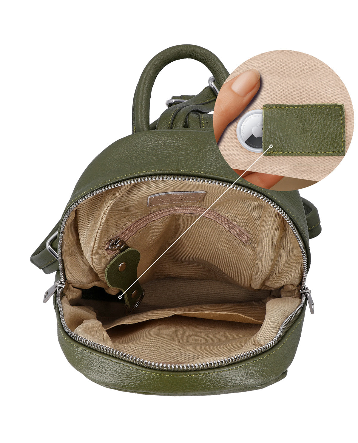 Daypack with airtag pocket and detachable keychain - Made in Italy