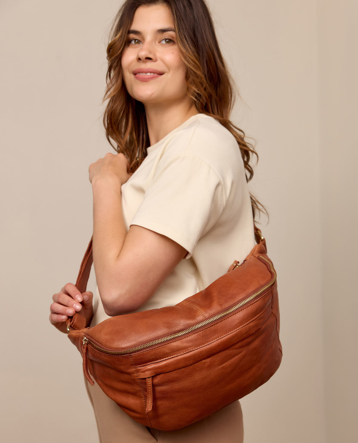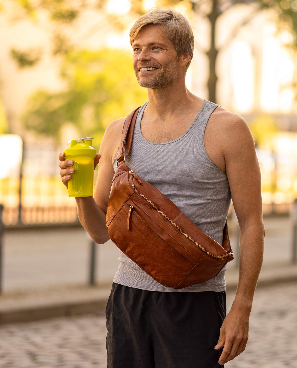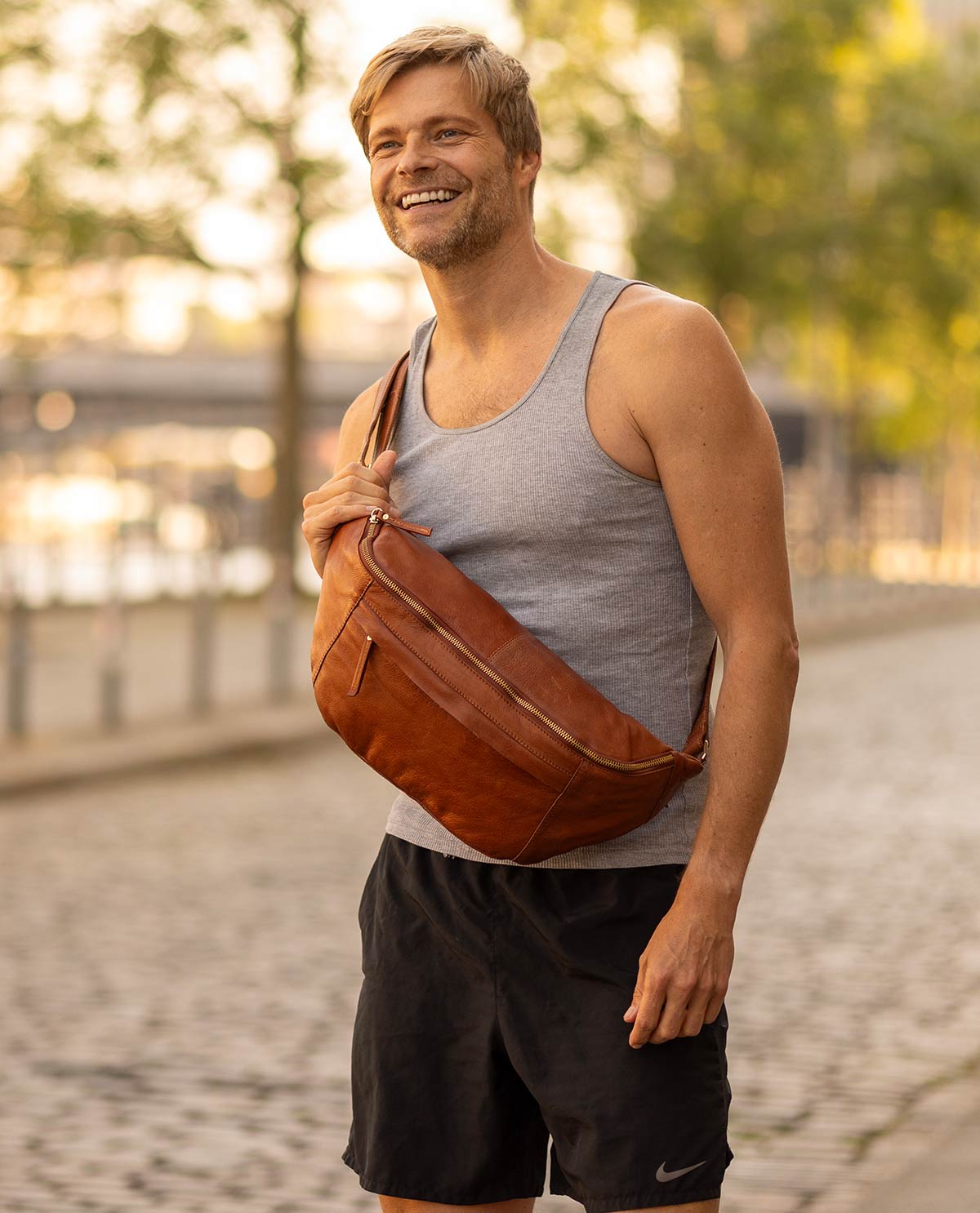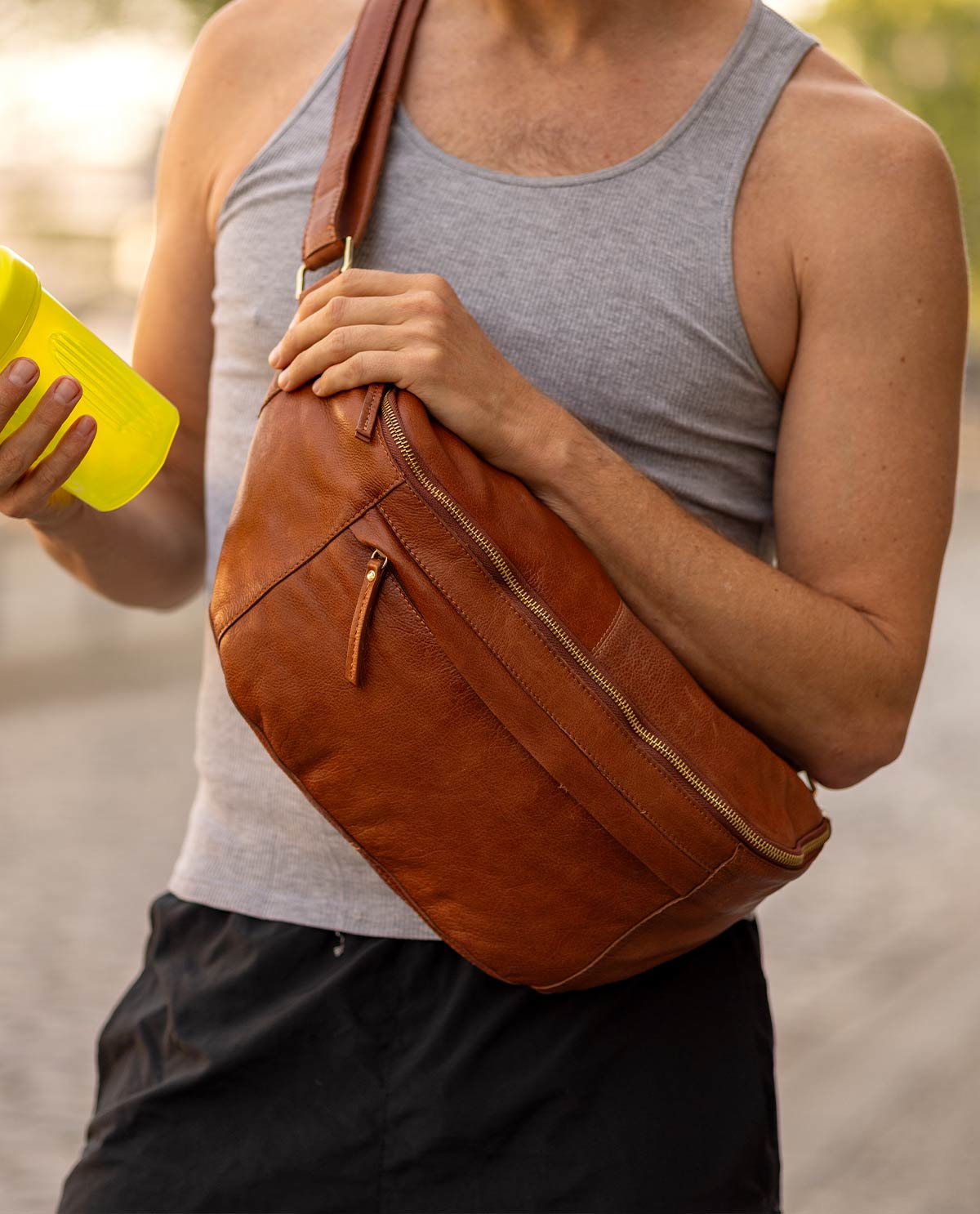 This robust and spacious cowhide leather belt-bag-inspired bag combines the advantages of a compact backpack with a trendy, casual cool bum bag, so you’ll always look good with this soft leather bag with gold zips. “Esben” can accompany you anywhere, so you can take everything you need with you while still looking cool. “Esben” has more than enough space for your phone, keys, purse, pocket organiser, pencil case and more!