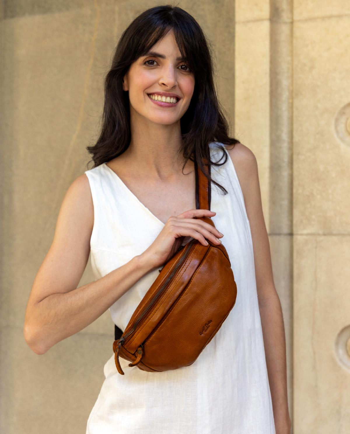 Our simple, no-fuss belt bag “Spencer” will win you over with its minimalist design, quality, and functionality. The high-quality processed cowhide leather means this belt bag is strong and sturdy. It has multiple zipped pockets where you can keep your festival essentials safe. Experienced festival-goers and concert lovers will really appreciate this bag's robustness. There's plenty of space for your wallet, phone, keys and more inside. Adjust this bag to fit you perfectly using the adjustable strap and plastic buckle. Wear “Spencer” over your shoulder or round your waist, whatever suits you. Our motto is: “Spencer” is simple. Practical. Good.