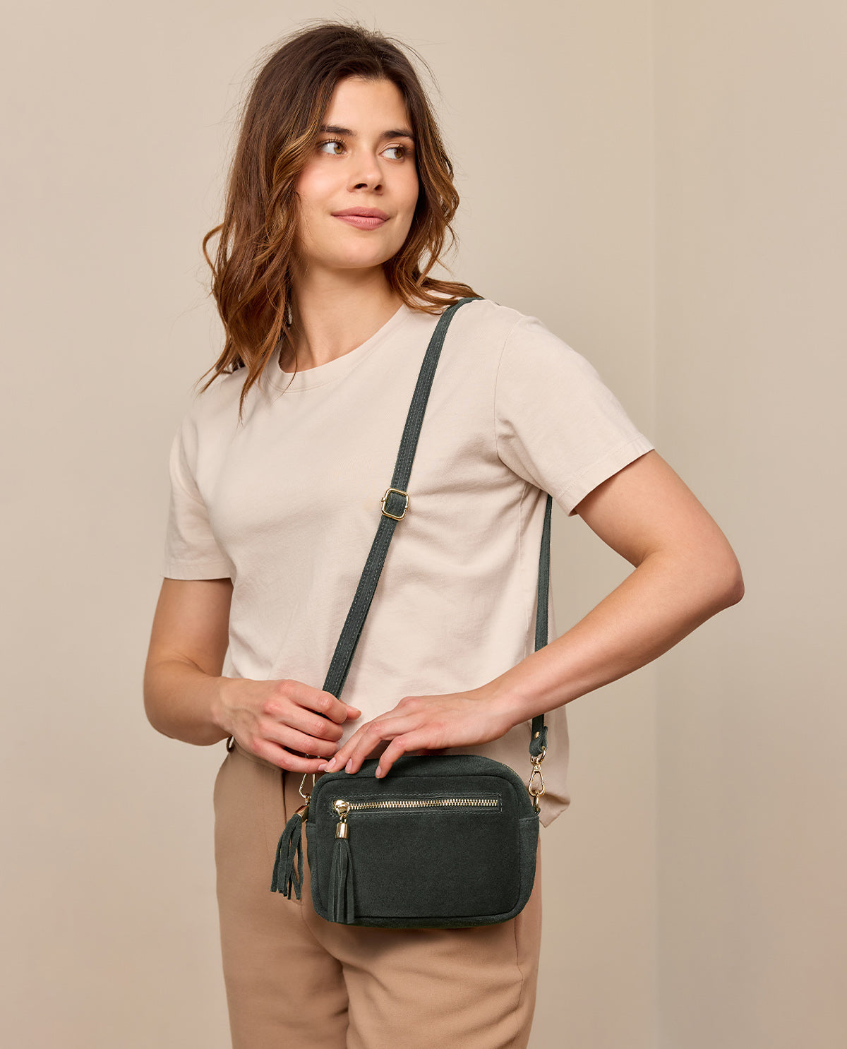 Belt bag bumbag fanny pack crossbody bag womens dark green leather - Made in Italy