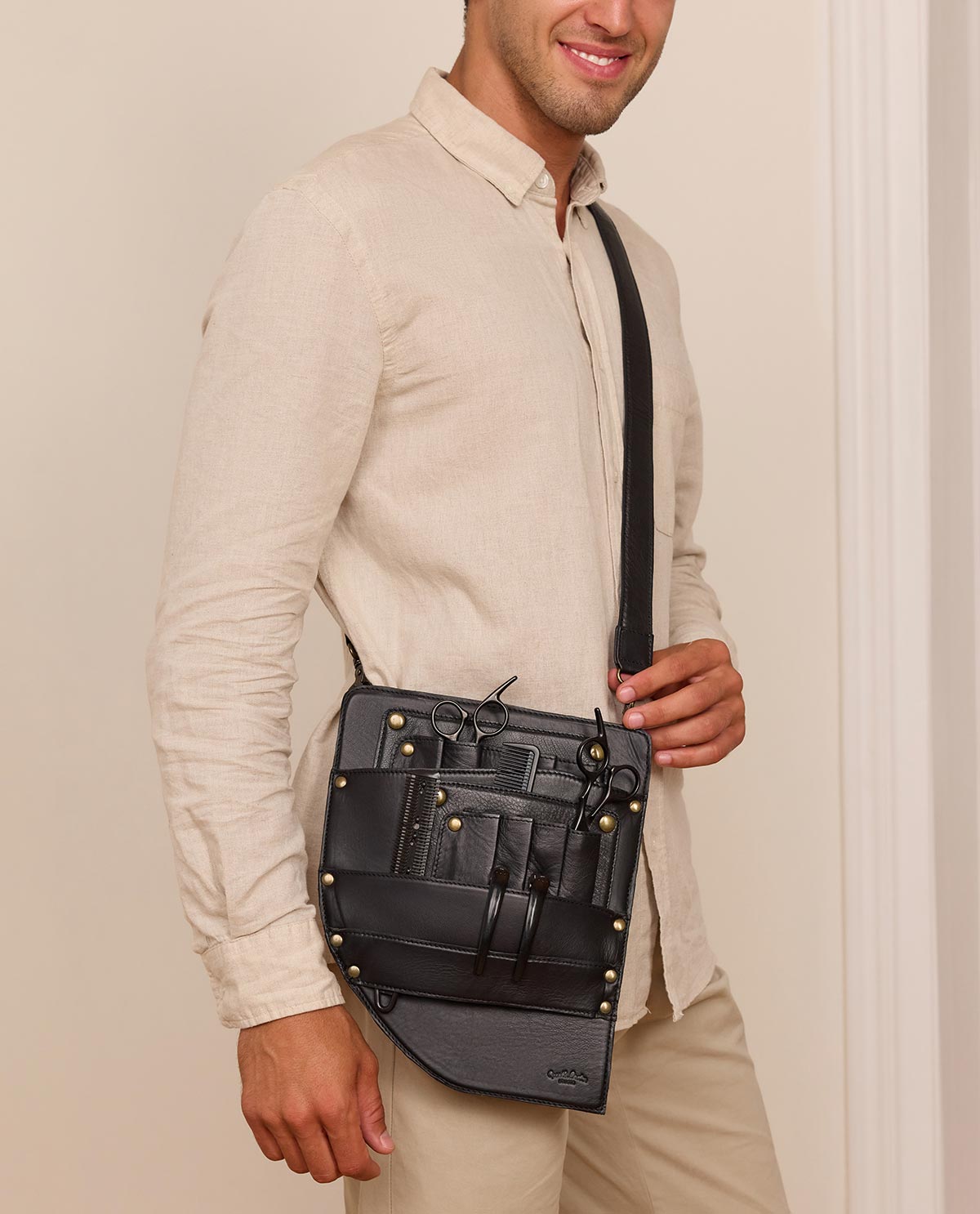 "Liesel" is the perfect companion for hair stylists who value style and functionality, whether in the salon or on the go. This high-quality hairdressers bag is made from fine leather and will impress you with its elegant design as well as its thoughtful functionality. There are multiple compartments inside, so "Liesel" offers ample space for all your tools like as scissors, combs, and styling equipment, ensuring clear organisation so everything is always within easy reach.
