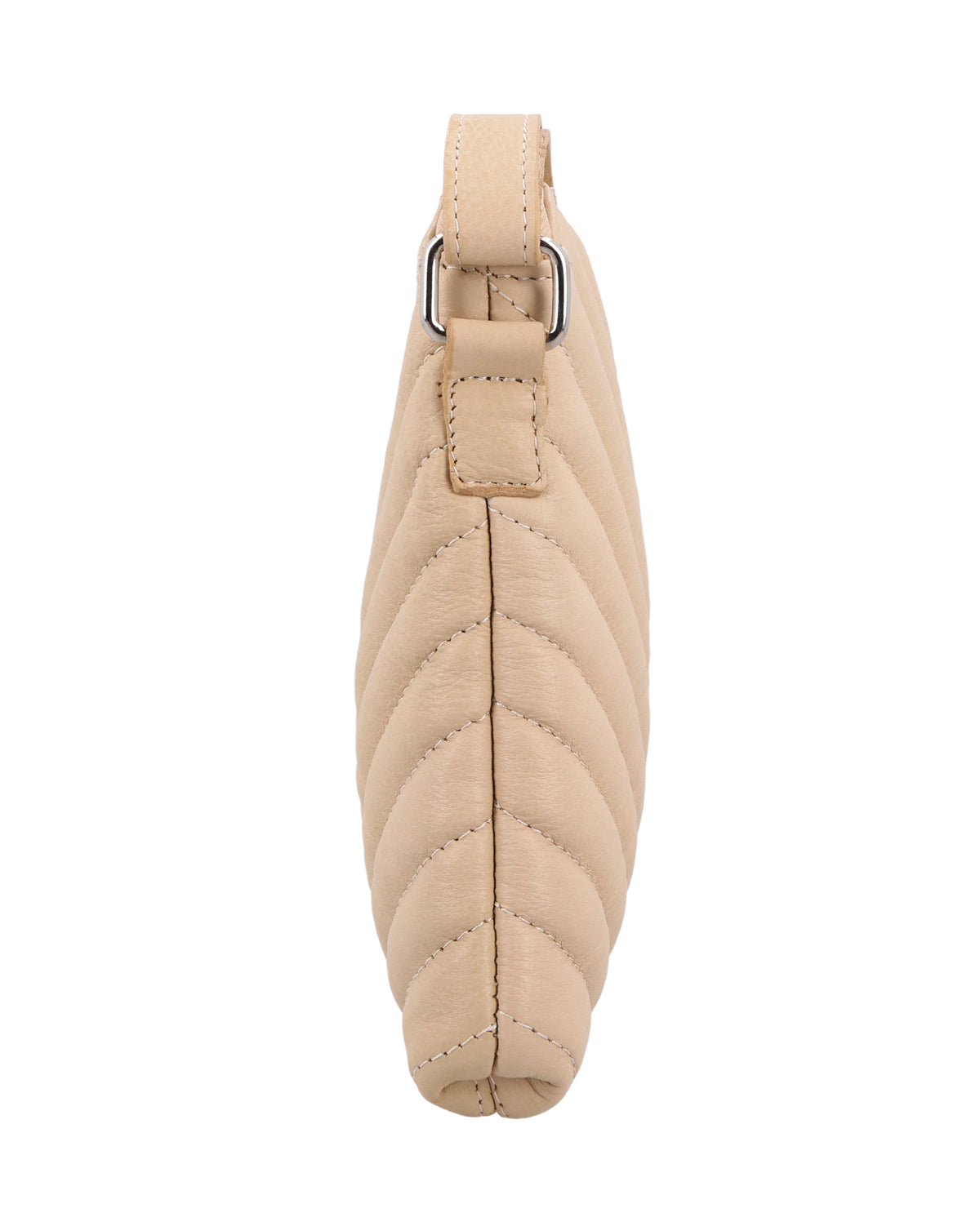 The small "Aline" handbag is a leather handbag for women who want to consciously integrate color and texture into their everyday lives. The beige leather has a lively look and the striking pattern on the surface makes it a special eye-catcher that immediately adds lightness to your outfit. Despite its compact size, "Aline" offers exactly the flexibility you need in everyday life thanks to its zippered main compartment and adjustable shoulder strap. This leather shoulder bag accompanies you through the day with ease, making a clear, positive style statement.