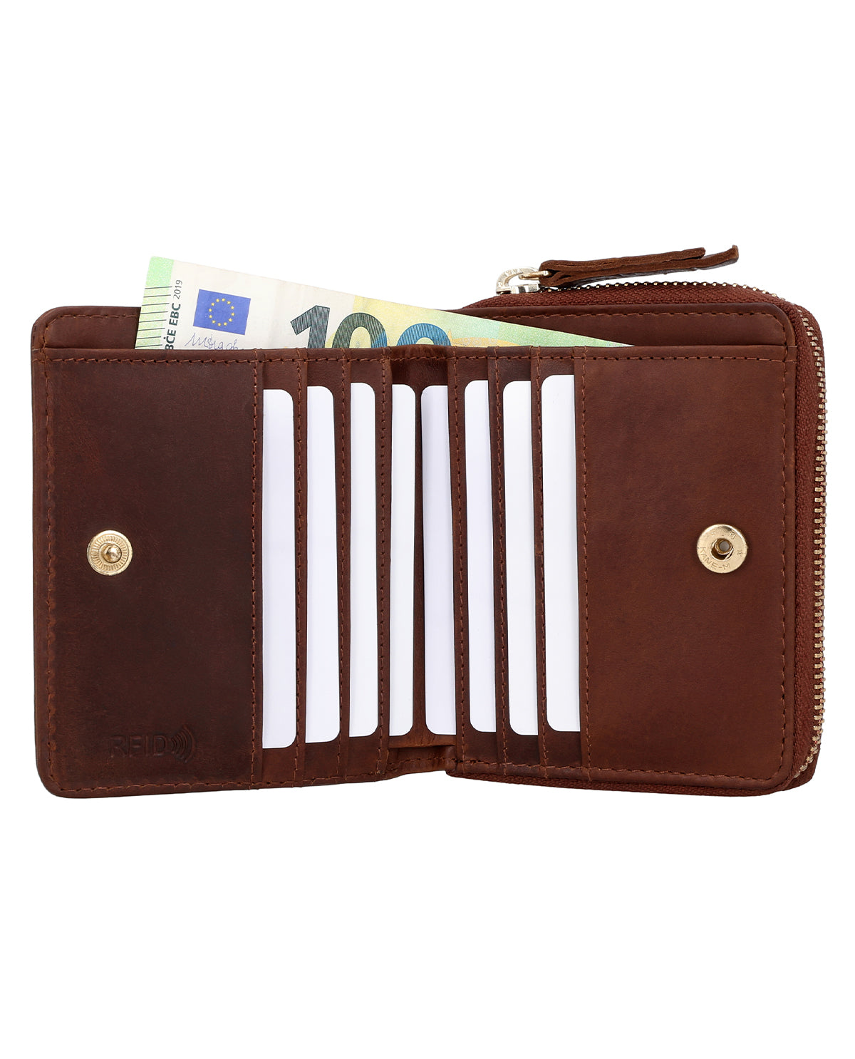 Inside, "Monika" has a large coin compartment with two compartments, so you can make the most of the space available. There is also an extra coin compartment for a single coin – perfect if you want to have a suitable coin quickly to hand. But the highlight is definitely the fold-out card compartment with space for up to 8 cards and an insert compartment for your bills. The large zipper protects your belongings perfectly so that nothing can fall out. Pop it in your bag and off you go – with "Monika"!