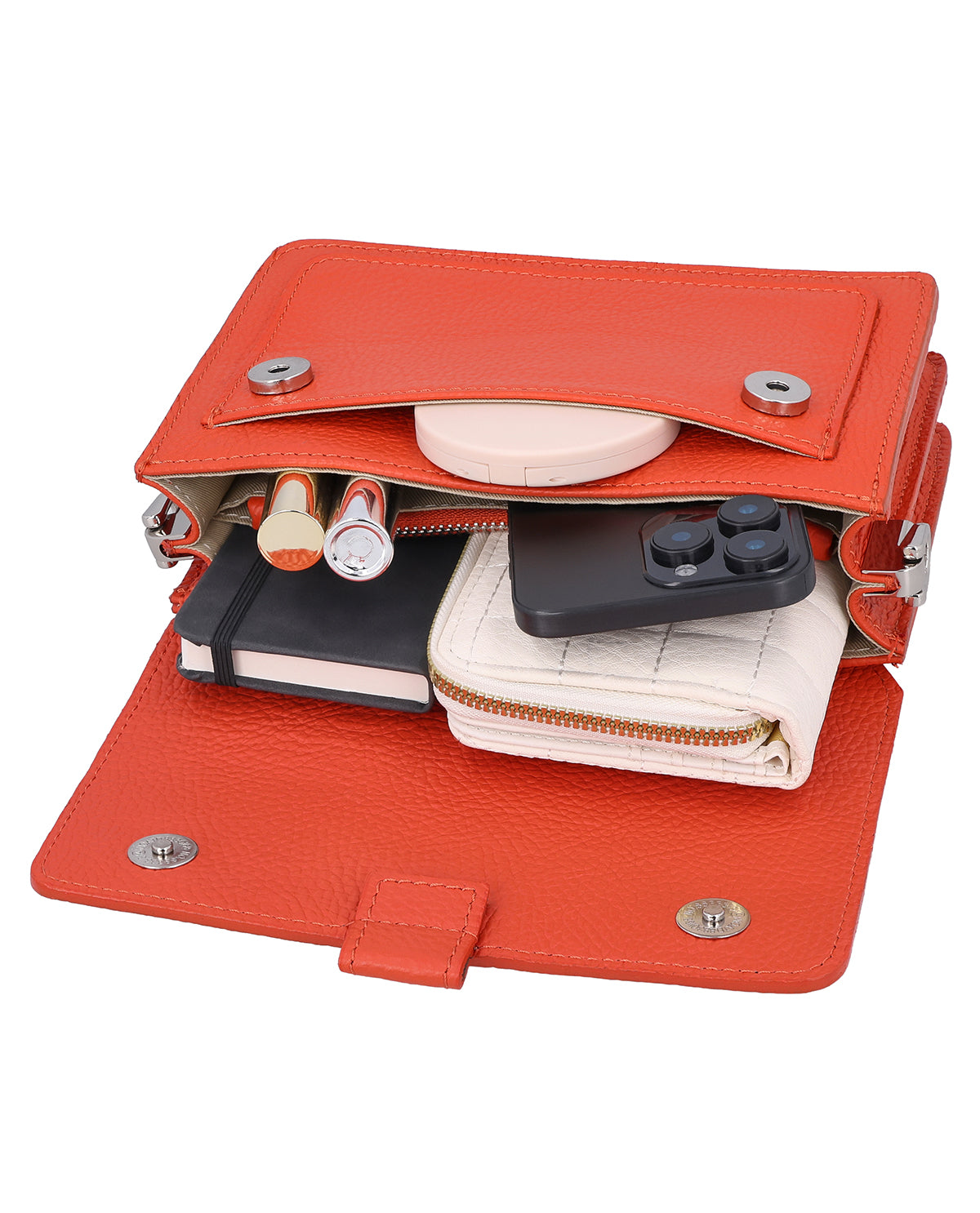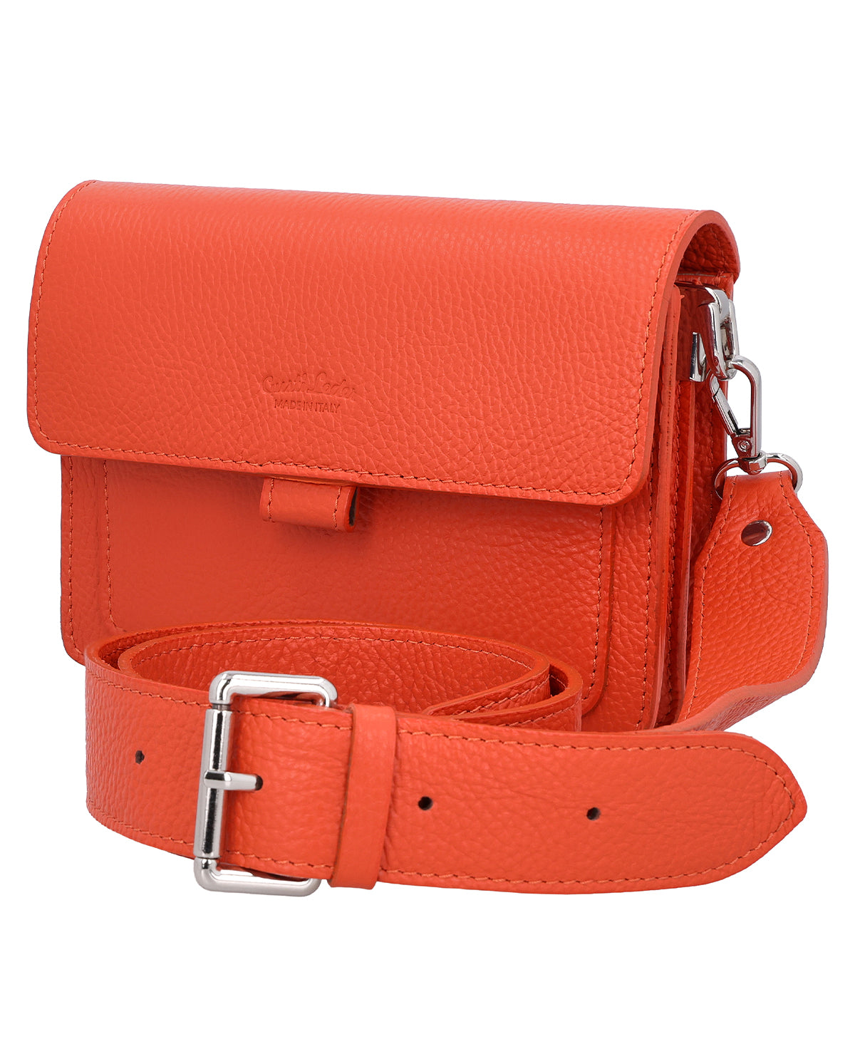 Shoulder bag handbag clutch leather bag women orange leather - Made in Italy