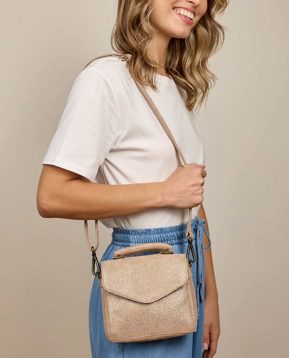 A handbag that's as versatile as you! No matter if you use her as your casual everyday companion, or take her on big nights out, “Willow” adds the perfect finishing touch to any outfit thanks to her sleek design and gold colour. The metal appliqués and closures make “Willow” the perfect vintage shoulder bag!