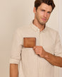 The "Alfred" wallet, made of high-quality leather, is the ideal companion for the modern man who values both quality and elegant design. With its classic shape and robust leather, it not only offers a stylish appearance but also exceptional durability. Thanks to its compact size, it fits easily into any bag, yet is still spacious enough to safely store your most important cards and cash.