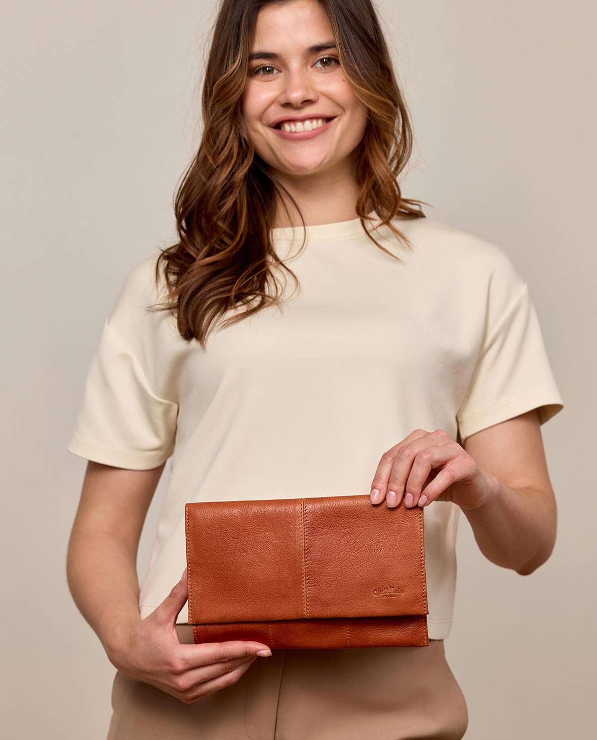 Pratique et stylé – le sac crochet "Nico" en cuir marron