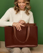 Vous voulez aller en ville après les cours ? Peut-être faire les courses de la semaine ou plutôt aller à la bibliothèque ? Pas de problème ! Le grand compartiment intérieur d'"Agatha" a assez de place pour tout. Votre ordinateur portable 15 pouces, votre bouteille d'eau, votre porte-monnaie, divers carnets de notes, vos clés et votre trousse y trouveront leur place. De plus, grâce à la grande ouverture, il y a suffisamment d'espace de rangement disponible pour quelques achats spontanés. Les anses en cuir véritable complètent le design d' "Agatha".