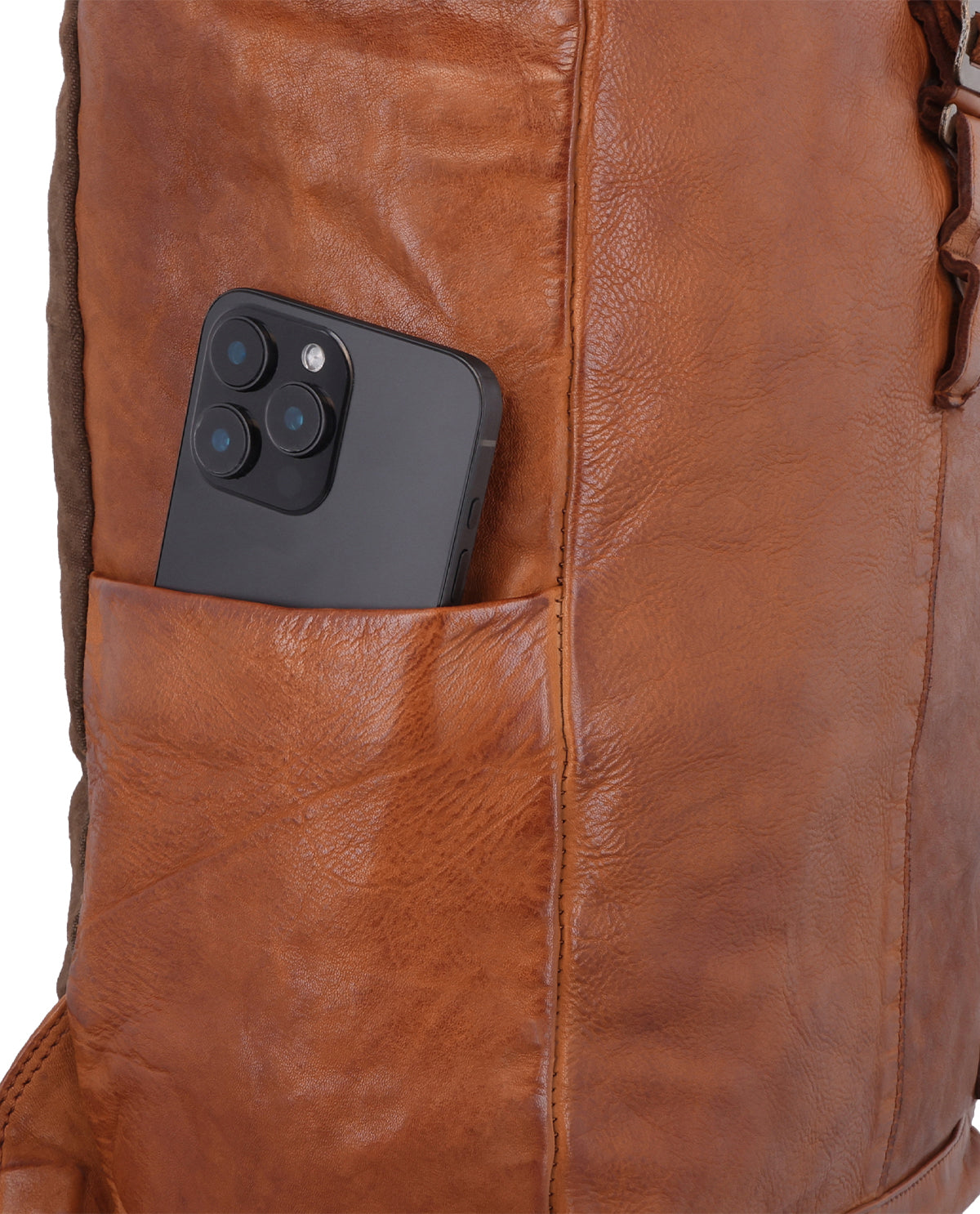 Que ce soit pour l'école, l'université ou le travail, notre sac à dos Rolltop "Bendik" convient toujours. Il sait séduire par sa flexibilité, son grand confort de port et son espace. Ce daypack classique et robuste en cuir se distingue surtout par son rolltop tendance - un look incontournable en ce moment.