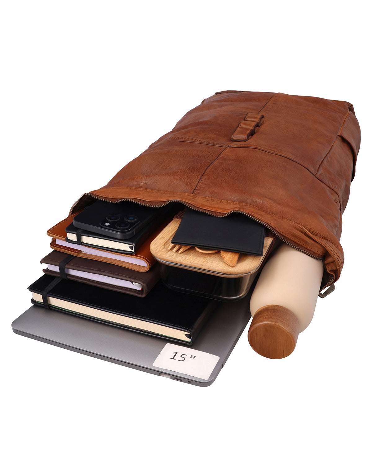 Sac à dos Rolltop Sac à dos en cuir Marron Cuir 18L
