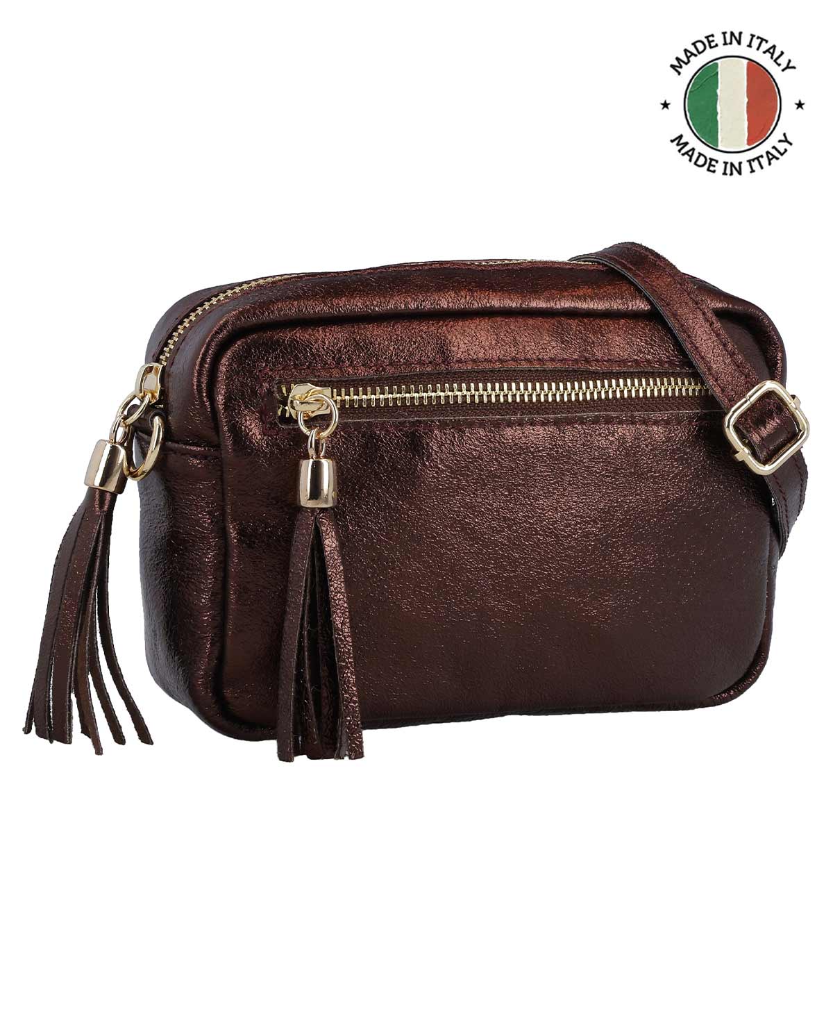 Le sac bandoulière "Cariba" en cuir de haute qualité est le compagnon idéal pour chaque femme qui apprécie à la fois le style et l'utilité pratique. La fermeture éclair sécurisée protège tes objets de valeur de manière fiable, tandis que le pendentif élégant sur la fermeture ajoute une touche spéciale au sac. À l'intérieur, tu trouveras une doublure en tissu claire et finement structurée, qui non seulement a l'air élégant, mais te permet également d'avoir une vue d'ensemble claire de tes essentiels. De plus, tu y trouveras un discret logo "Made in Italy" finement embossé ainsi qu'un patch gravé intégré, offrant de l'espace pour ta dédicace personnelle. Ainsi, "Cariba" devient un accessoire non seulement beau mais aussi individuel.