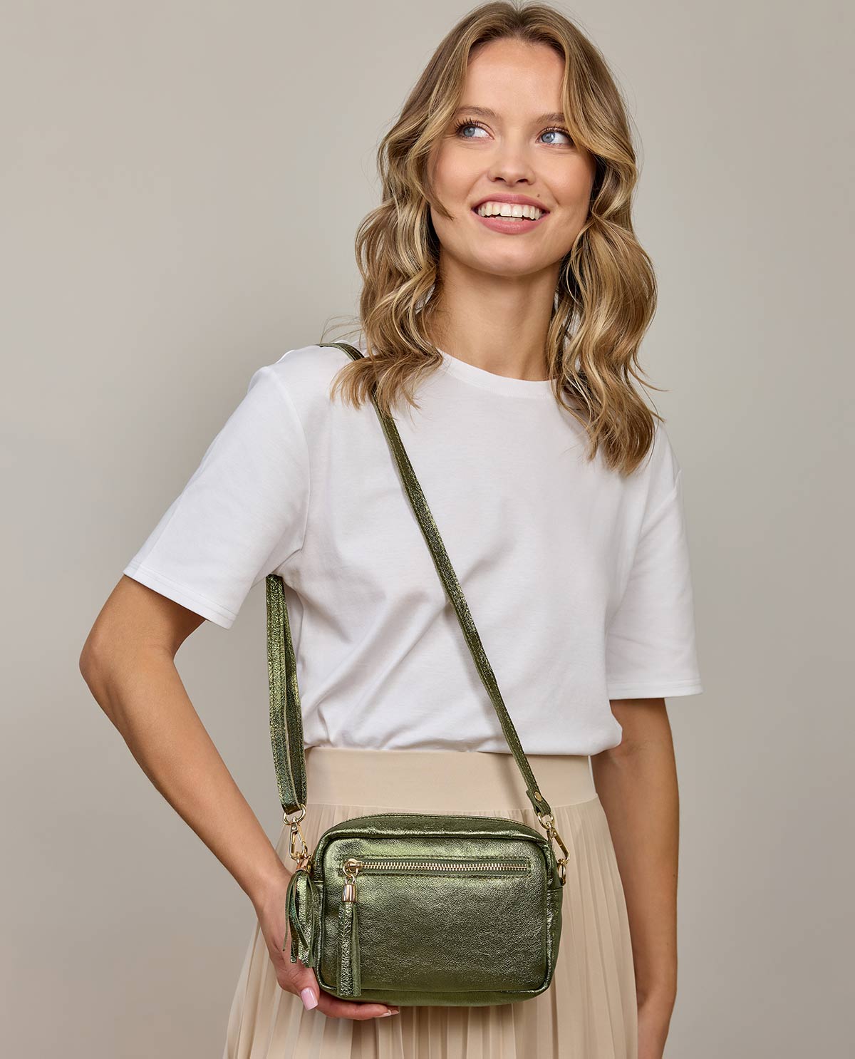 Sac Banane Ceinture Fanny Pack Sac Bandoulière Femmes Vert Verni Cuir - Made in Italy