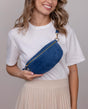 Sac Ceinture Banane Sac Bandoulière Crossbody Sac Cuir Femmes Bleu Cuir - Made in Italy