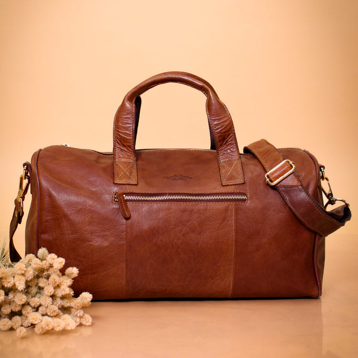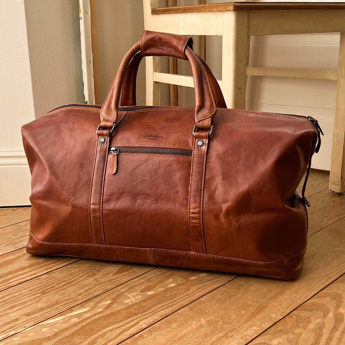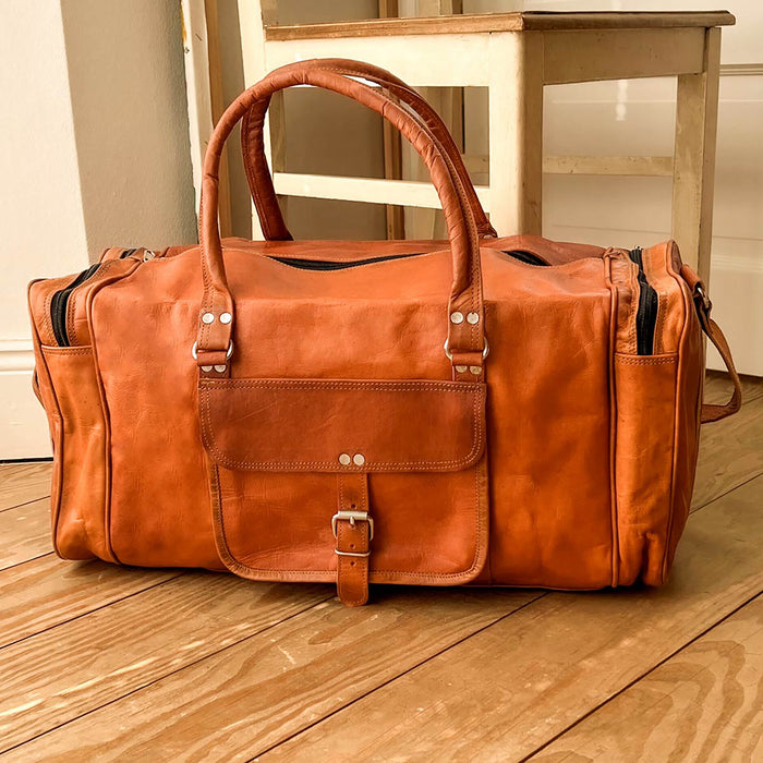 Utilise ce sac de voyage spacieux en cuir pour tes escapades de week-end.
