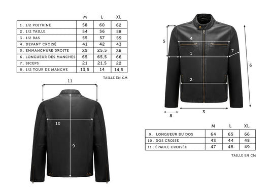Vous trouverez ici nos vestes ainsi qu'un guide des tailles pour trouver la veste parfaite pour vous.