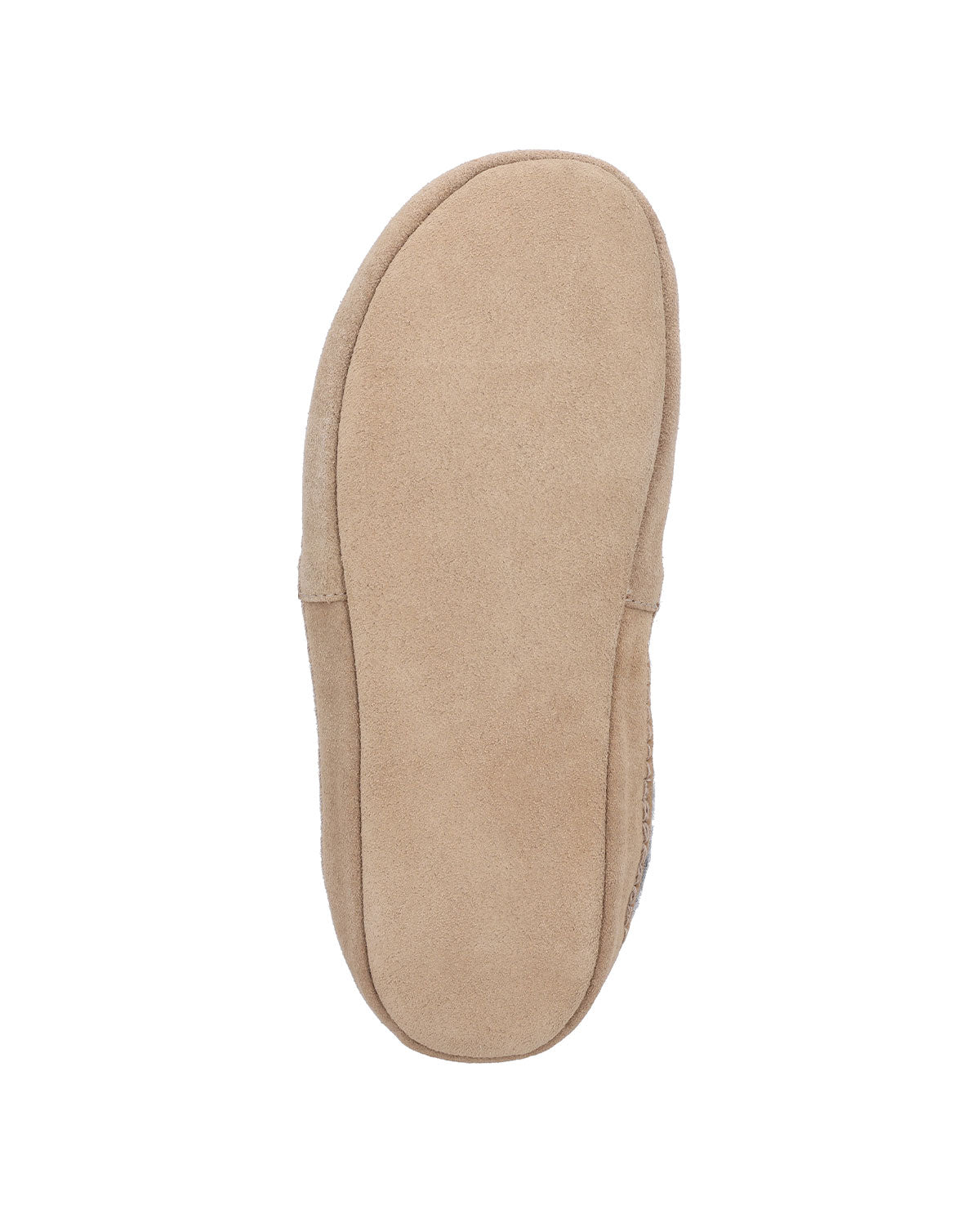 La semelle extérieure en cuir véritable offre une base flexible et des pas silencieux sur tous les revêtements de sol, tandis que la semelle intérieure rembourrée en laine vierge procure une sensation de marche rebondissante, comme si tu marchais sur des nuages. Les chaussons sont fabriqués en Europe – en Autriche et en Hongrie – et représentent une fabrication durable et des matériaux naturels. Une petite étiquette en tissu avec le logo blanc "Gusti Cuir" ainsi qu'une étiquette de taille tissée au niveau du talon complètent la finition de haute qualité. Avec "Marah", tu profites du confort, du style et de la conscience environnementale en une seule chaussure.