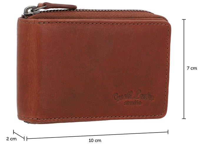 Le portefeuille est fabriqué en cuir durable et a un profil mince, ce qui le rend idéal pour les poches de pantalon ou les petits sacs à main. Le compartiment principal peut être fermé en toute sécurité avec une fermeture éclair, permettant ainsi de ranger en toute sécurité même les petits objets. Ce portefeuille multifonctionnel offre non seulement de l'espace pour vos objets de valeur, mais sert également de porte-clés de voiture pratique. Découvrez la combinaison parfaite de fonctionnalité et d'élégance avec ce portefeuille de haute qualité.