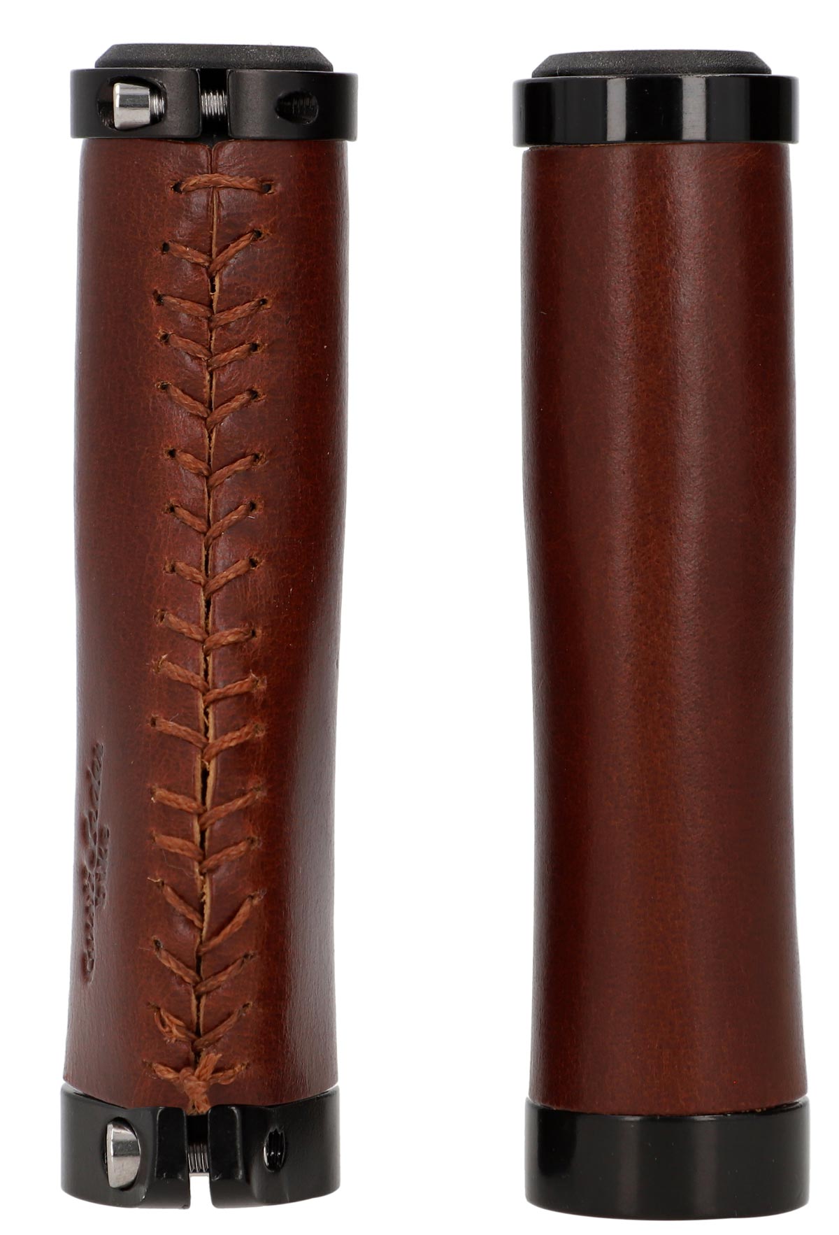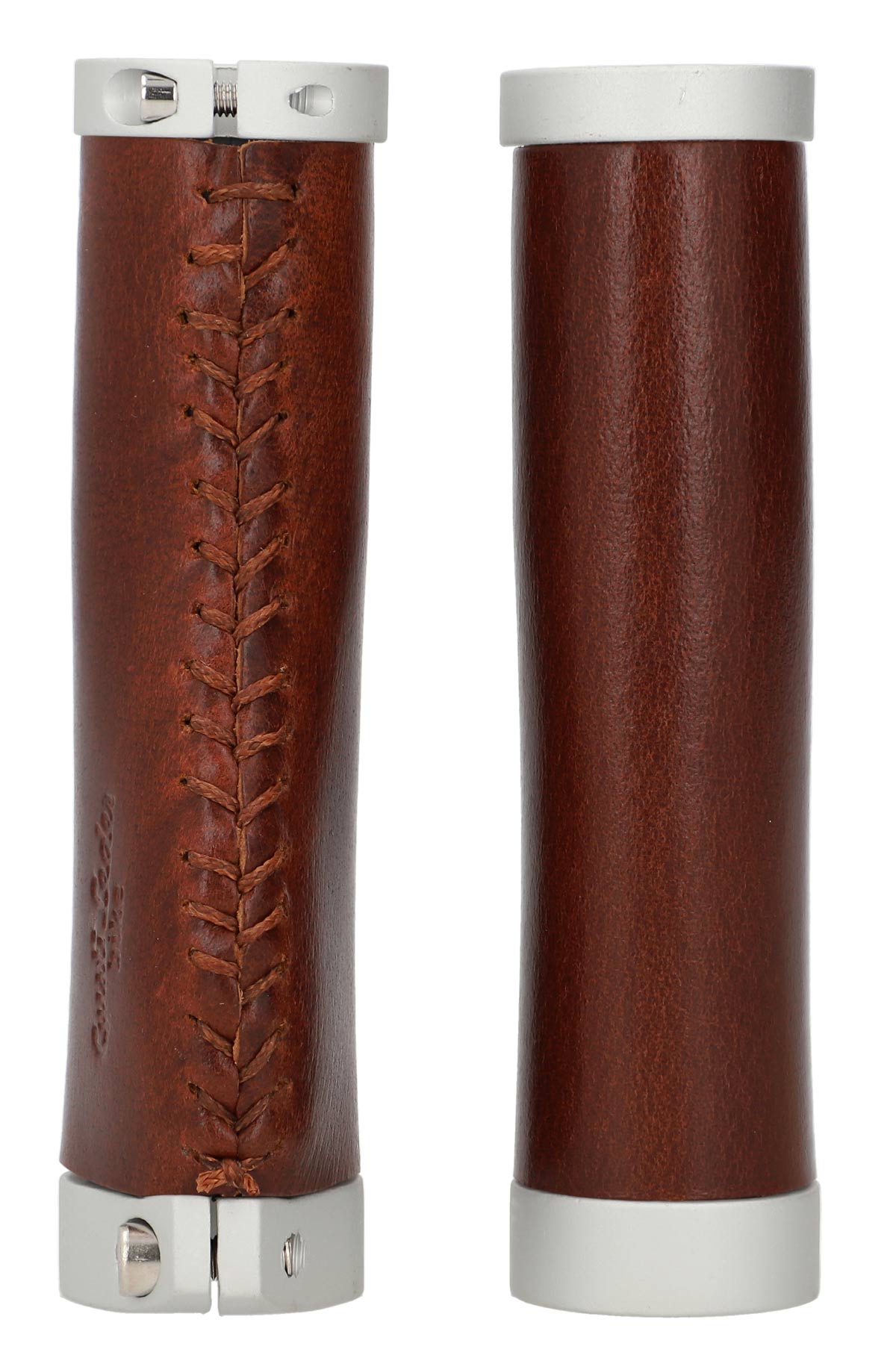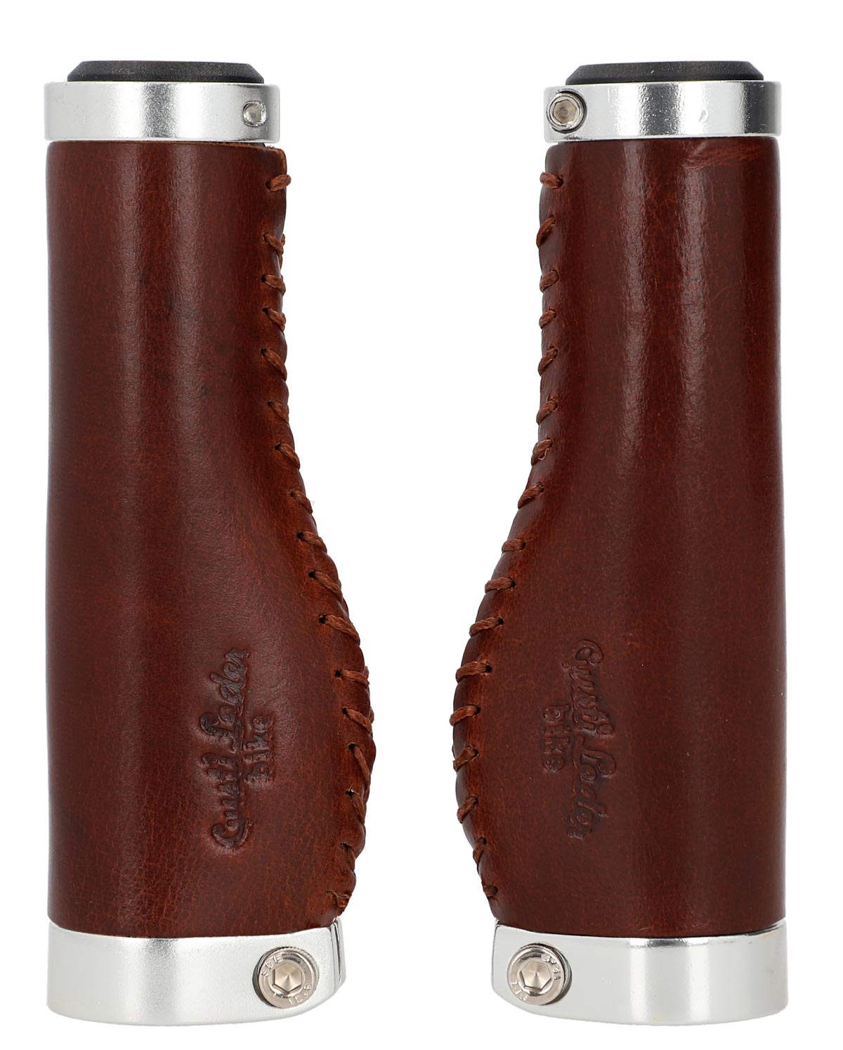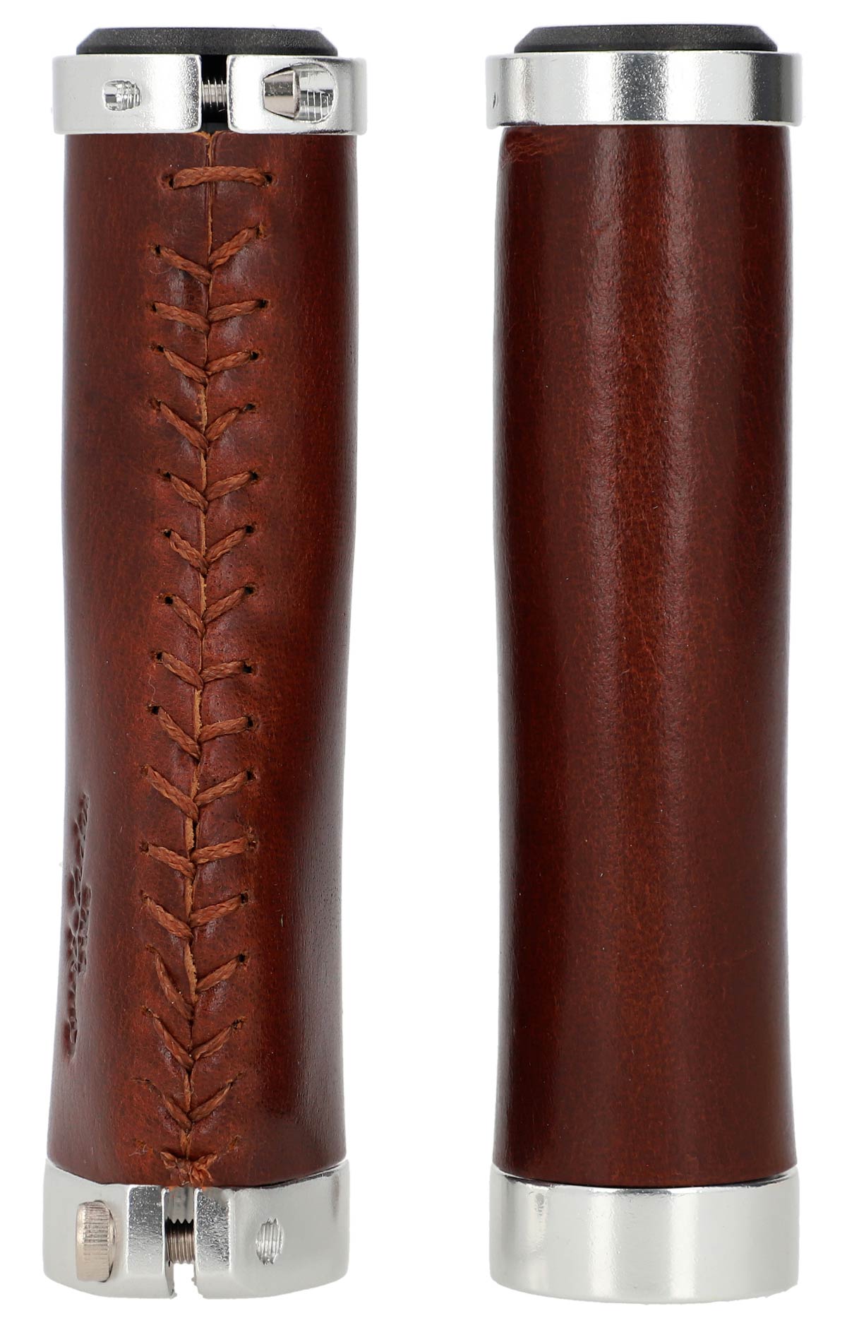 Les poignées de guidon en cuir "Phil A." s'adaptent aussi bien visuellement à un vélo à vitesse unique tendance qu'à un vélo hollandais classique et sont très faciles à monter. Leur mélange de matériaux de haute qualité, composé d'aluminium coloré et de cuir véritable à 100%, assure une excellente prise et un comportement de direction constamment bon. En même temps, elles s'adaptent parfaitement à l'anatomie de tes mains, amortissent les chocs et les vibrations et augmentent ainsi la sûreté de la prise. Après une courte période de rodage, tu ne voudras plus te passer du confort tangible et de l'agréable sensation au toucher de ces poignées.
