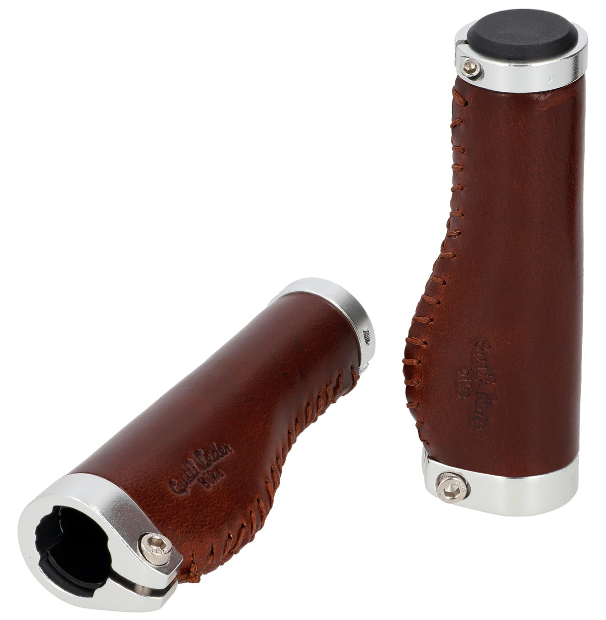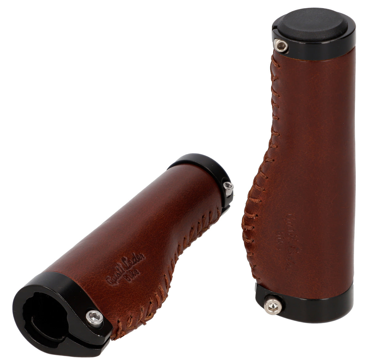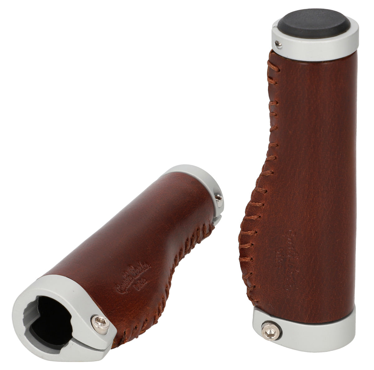 Les poignées de guidon en cuir "Phil A." s'adaptent aussi bien visuellement à un vélo à vitesse unique tendance qu'à un vélo hollandais classique et sont très faciles à monter. Leur mélange de matériaux de haute qualité, composé d'aluminium coloré et de cuir véritable à 100%, assure une excellente prise et un comportement de direction constamment bon. En même temps, elles s'adaptent parfaitement à l'anatomie de tes mains, amortissent les chocs et les vibrations et augmentent ainsi la sûreté de la prise. Après une courte période de rodage, tu ne voudras plus te passer du confort tangible et de l'agréable sensation au toucher de ces poignées.