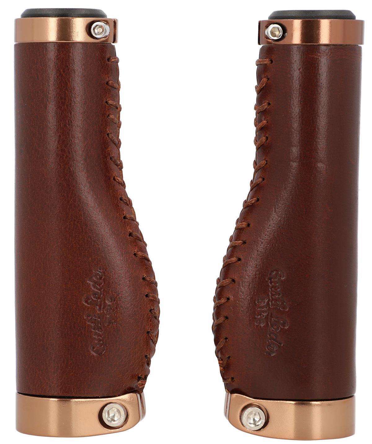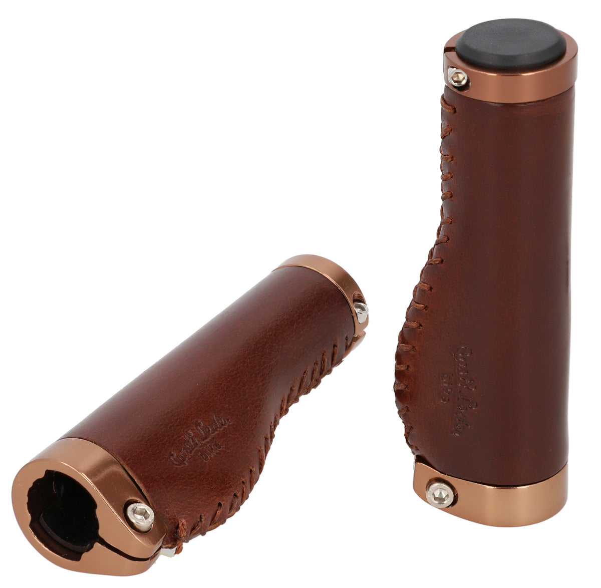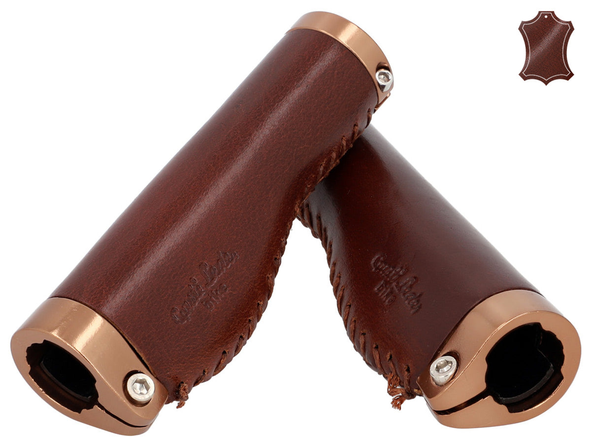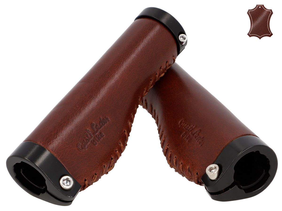 Les poignées de guidon en cuir "Phil A." s'adaptent aussi bien visuellement à un vélo à vitesse unique tendance qu'à un vélo hollandais classique et sont très faciles à monter. Leur mélange de matériaux de haute qualité, composé d'aluminium coloré et de cuir véritable à 100%, assure une excellente prise et un comportement de direction constamment bon. En même temps, elles s'adaptent parfaitement à l'anatomie de tes mains, amortissent les chocs et les vibrations et augmentent ainsi la sûreté de la prise. Après une courte période de rodage, tu ne voudras plus te passer du confort tangible et de l'agréable sensation au toucher de ces poignées.