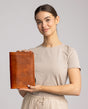 La morbida pelle di capra conciata naturalmente, di colore marrone chiaro, avvolge il tuo libro e convince con il suo stile semplice e sobrio, che unisce un tocco di naturalezza al design vintage di tendenza. Tattilità e aspetto che convincono! Così il tuo libro preferito può accompagnarti ovunque, senza subire seri danni o cadere vittima di sguardi curiosi. Perfetta anche come copertura protettiva per il tuo libretto sanitario! Una vera trasformista - la nostra "Becky"!