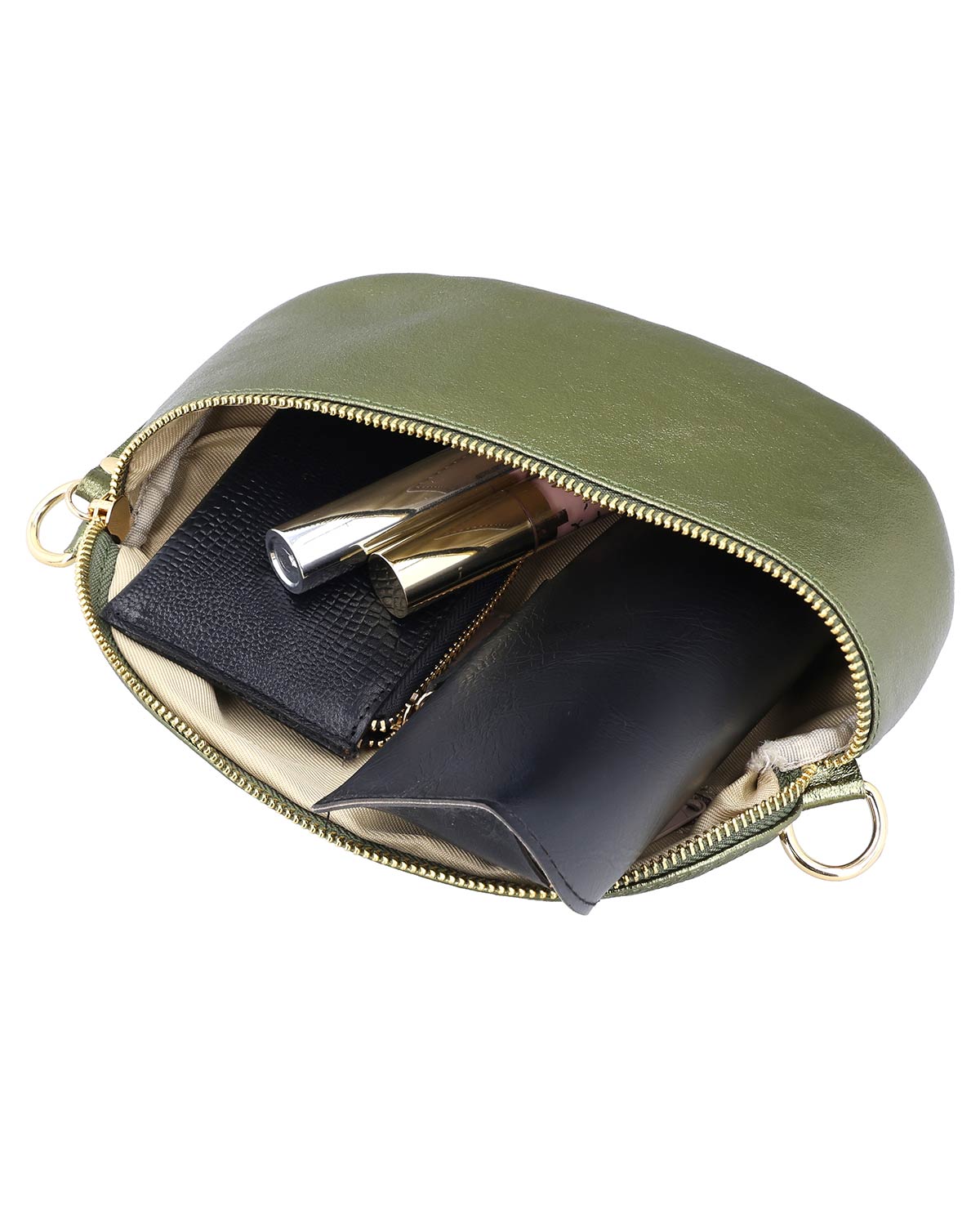 La borsa a tracolla "Brinja" si distingue per il suo design elegante e la sua alta funzionalità. Con la silhouette marcata e semicircolare e la chiusura a cerniera completa lungo il bordo superiore, offre non solo spazio sufficiente per i tuoi oggetti essenziali, ma anche sicurezza per tutti i tuoi effetti personali. La pelle di alta qualità le conferisce un aspetto raffinato che si integra perfettamente nella tua vita quotidiana moderna. All'interno troverai anche il logo "Made in Italy" finemente impresso, che sottolinea in modo impressionante l'origine e la qualità di questa borsa.