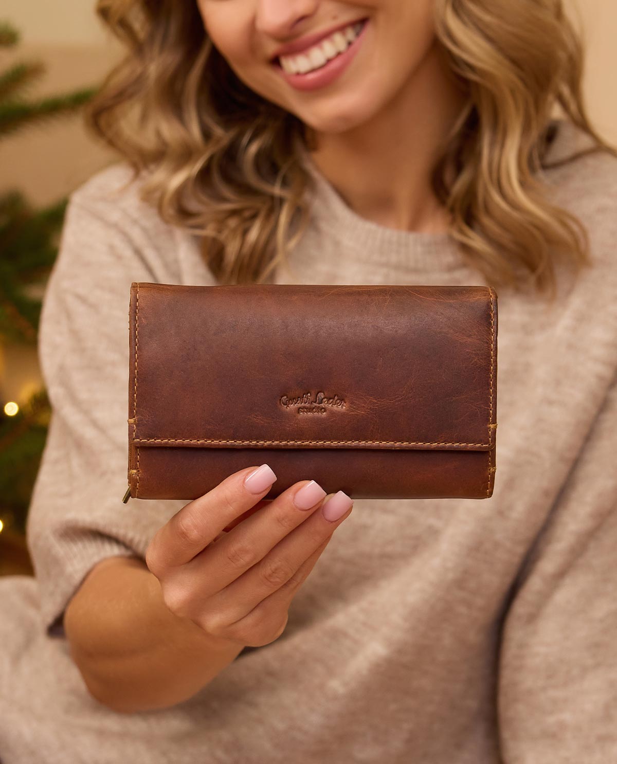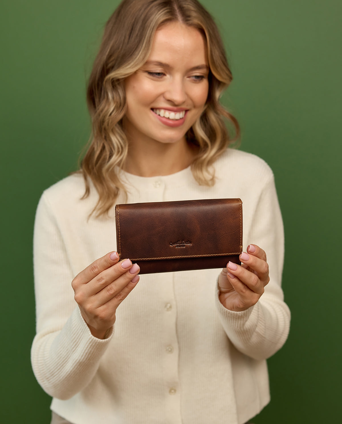 Scopri il nostro portafoglio da donna di alta qualità "Angelique" in pelle marrone – un compagno elegante che unisce perfettamente design e funzionalità. Ispirato dal fascino urbano di Berlino, è ideale per la tua vita quotidiana, che sia per una passeggiata in città, al caffè o in viaggio. La vera pelle resistente garantisce un aspetto elegante e una sensazione piacevole al tatto, che con il tempo diventa ancora più bella. "Angelique" rappresenta stile, qualità e organizzazione – tutto ciò che ti aspetti da un portafoglio moderno.