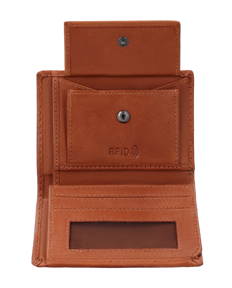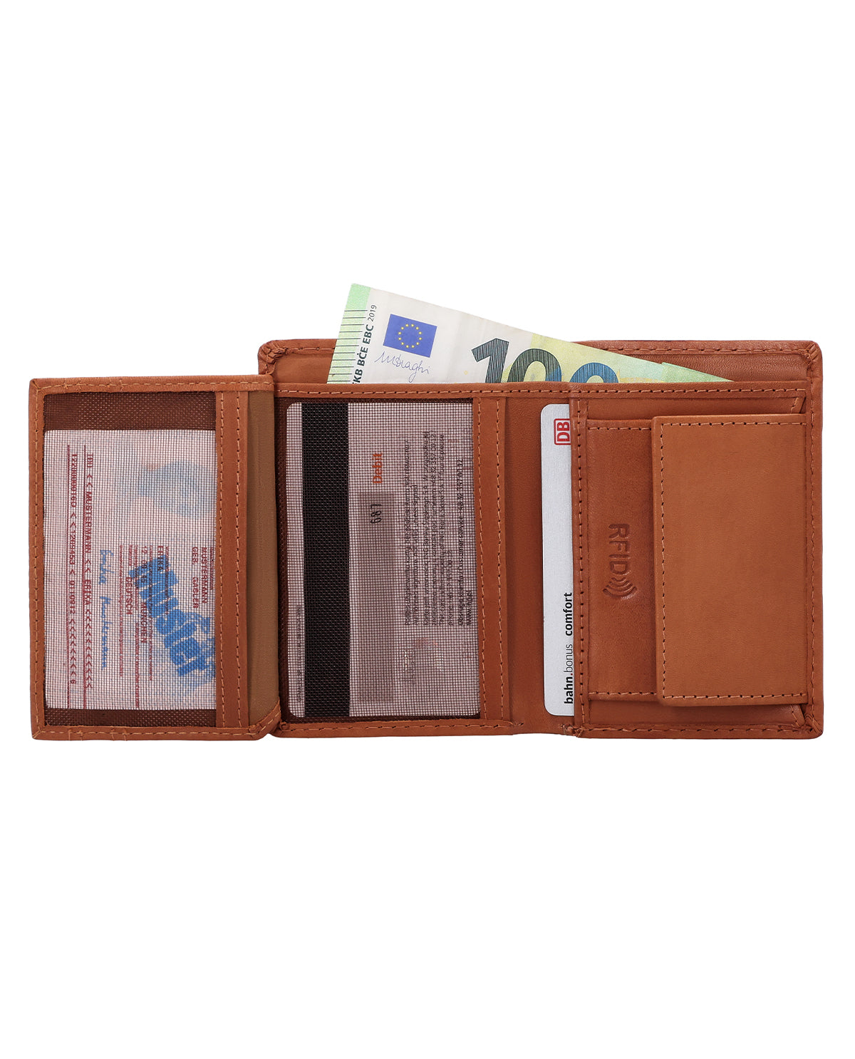 Il tuo portafoglio deve solo fare il suo lavoro? Allora "Gabe" è quello che fa per te! Questo portafoglio semplice e pratico è super essenziale, ma ha un sacco di spazio per tutto quello che ti serve. Una cosa davvero forte di "Gabe" sono i suoi scomparti per le carte: sono semitrasparenti, così puoi vedere subito quale carta hai messo in quale scomparto. Lo scomparto per le monete si chiude in modo sicuro con un bottone a pressione e anche le tue banconote trovano posto in "Gabe". Per i piccoli momenti quotidiani c'è anche uno scomparto extra per una singola moneta, perfetto se vuoi avere qualcosa a portata di mano. Grazie alla protezione RFID integrata, le tue carte sono anche al sicuro da letture indesiderate. Il formato maneggevole sta in qualsiasi tasca dei pantaloni e colpisce per il suo design classico e senza tempo. La pelle resistente è perfetta per tutto e col tempo diventa ancora più bella.