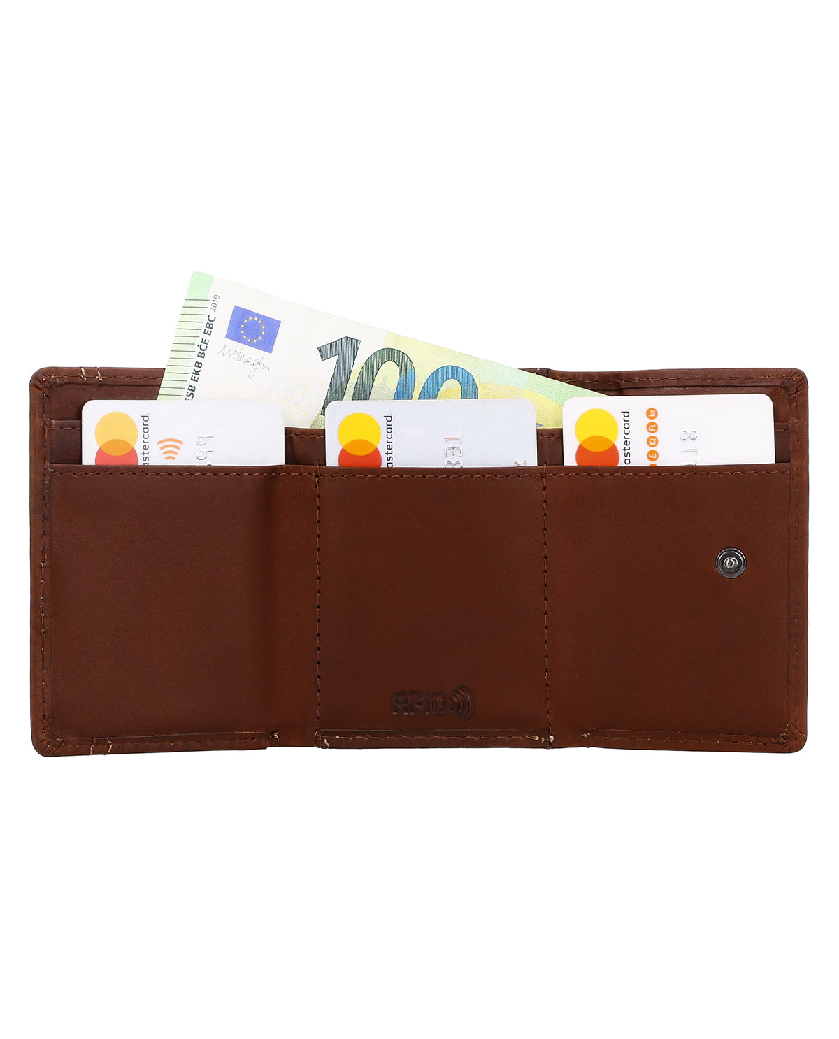"Ronald" ha 3 scomparti interni, uno scomparto per le banconote e uno scomparto per le monete nella parte anteriore, che si chiude con un bottone a pressione. Così niente può cadere e tutto rimane in ordine. Per chi ama le monete, c'è anche uno scomparto extra per una singola moneta, perfetto se vuoi avere rapidamente a portata di mano una moneta adatta. In più, "Ronald" ha anche uno scomparto sul retro, per un accesso più facile.