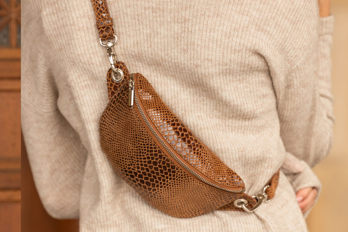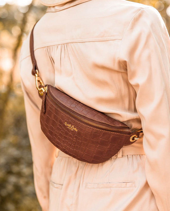 Preparati per il tuo prossimo incontro serale con la nostra "Annabelle". Molto pratica, questa borsa a cintura è il miglior compagno per la tua vita quotidiana, per le serate o ai festival. L'aspetto del coccodrillo sulla borsa le conferisce un aspetto chic e alla moda e completa qualsiasi outfit tu indossi. Puoi anche regalare questo bel pezzo di pelle ai tuoi cari in occasioni speciali.