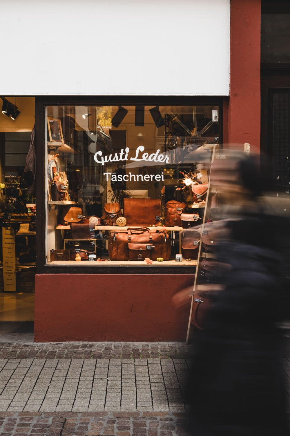 Nel nostro pittoresco negozio in Hauptstrasse ti aspetta una vasta selezione di prodotti in pelle unici. Dal portafoglio alla borsa a tracolla fino allo zaino da città, abbiamo tutto ciò che il tuo cuore desidera. Vieni a trovarci, annusa il profumo dei prodotti in pelle e convinci te stesso dei nostri prodotti. Non vediamo l'ora della tua visita! Il tuo team Gusti Heidelberg