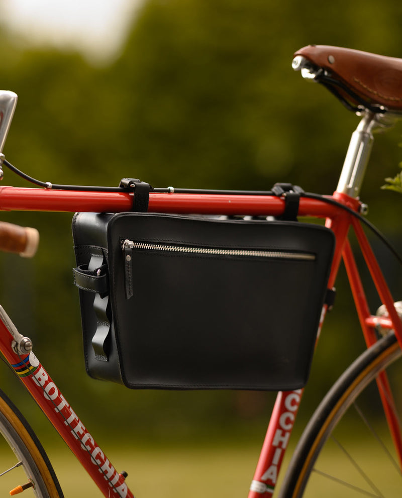 Le borse da telaio offrono una soluzione di stoccaggio elegante e pratica, senza occupare spazio sul portapacchi. Si fissano facilmente al tubo del telaio con le robuste cinghie in pelle. Leggere e compatte, proteggono i tuoi oggetti essenziali senza ostacolarti durante la guida.