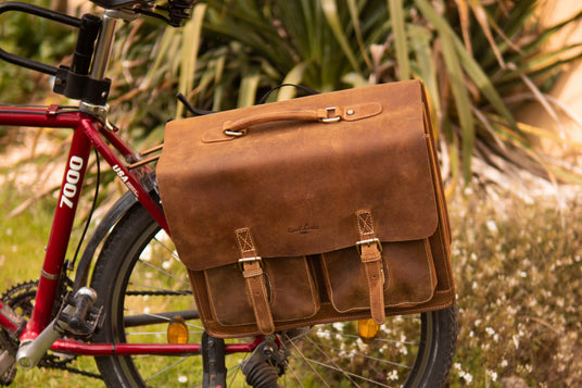 Dì addio agli zaini pesanti! Lascia che la tua bicicletta faccia il lavoro e usa le nostre borse in pelle, borse a tracolla e borse da lavoro. Design robusti e resistenti alle intemperie proteggono i tuoi oggetti essenziali da polvere, vento e sole, aggiungendo al contempo un tocco di eleganza al tuo viaggio.
