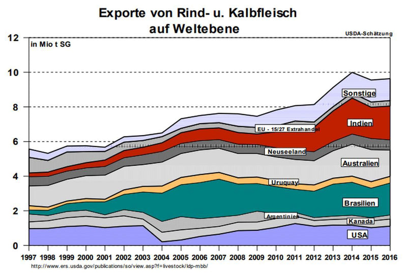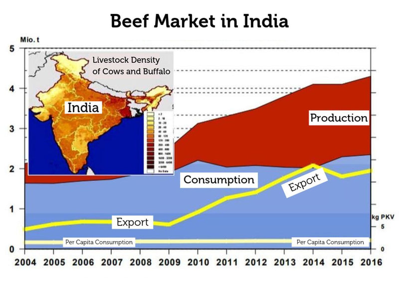 Ormai l'India è considerata uno dei maggiori produttori di carne bovina al mondo. Per confronto: nell'UE vengono prodotte circa 8 milioni di tonnellate di carne bovina all'anno. In India sono 4,3 milioni di tonnellate di carne. La carne bovina in India non è quindi solo consumata, ma ormai anche prodotta su larga scala. La maggior parte dei macelli indiani si trovano nel sud (Chennai) e nel nord (Uttar Pradesh e Kolkata). Da questi luoghi proviene addirittura il 50% della carne destinata all'esportazione verso il Qatar e l'Arabia Saudita. Perché? La macellazione degli animali avviene secondo norme precise, radicate nell'Islam. Solo se la carne è “halal”, viene consumata in luoghi a prevalenza islamica come il Qatar.