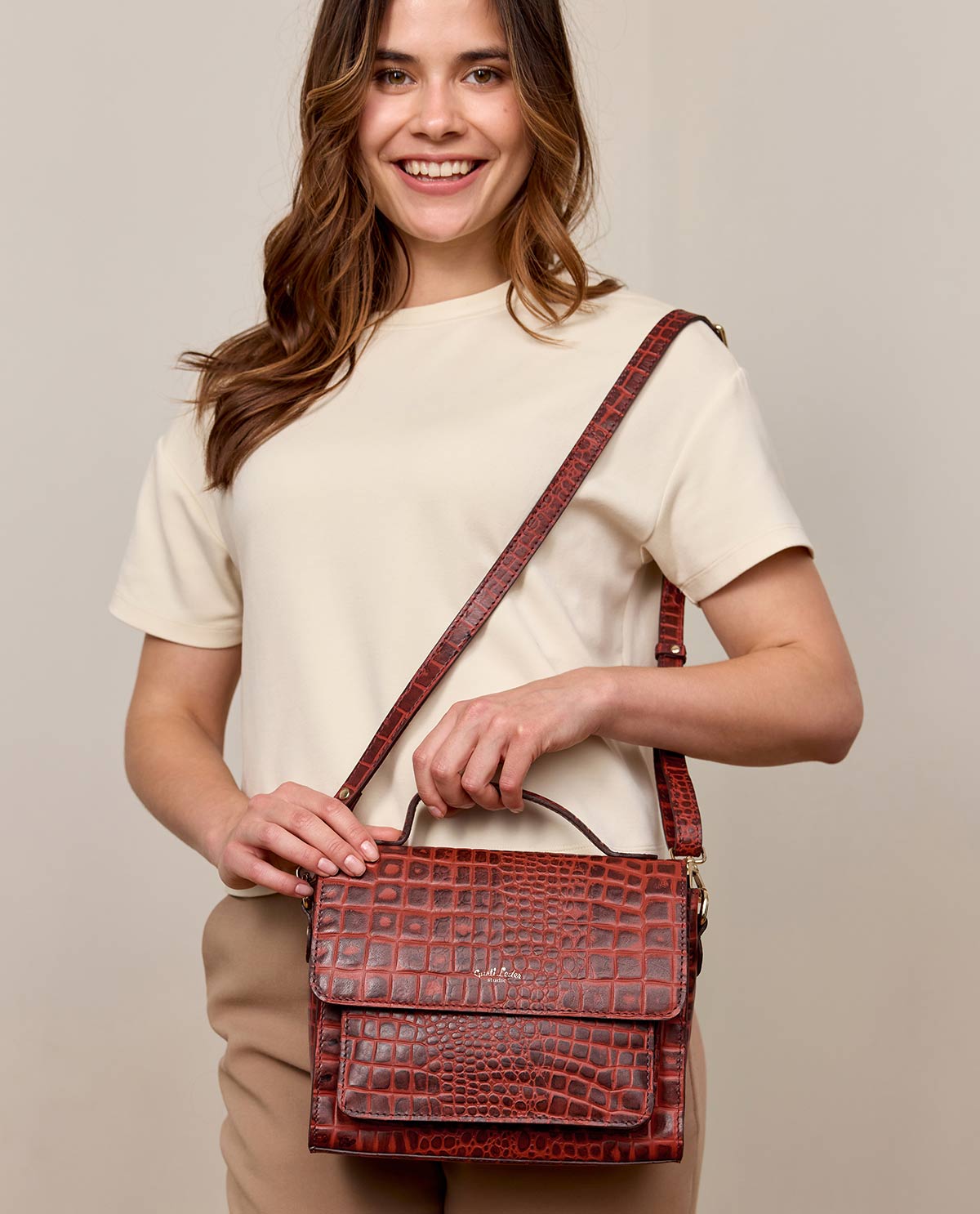 La "Caren" è una borsa a tracolla elegante, che convince con la sua pelle marrone raffinata e il design ben pensato. Ti offre la combinazione perfetta di stile e funzionalità e si adatta senza sforzo alla tua vita quotidiana. La borsa dispone di tre scomparti separati, che ti offrono un'organizzazione chiara e ti aiutano a trovare rapidamente le tue cose. Che si tratti del tuo smartphone, delle tue chiavi o dei tuoi cosmetici – con la "Caren" hai tutto ciò di cui hai bisogno sempre a portata di mano.
